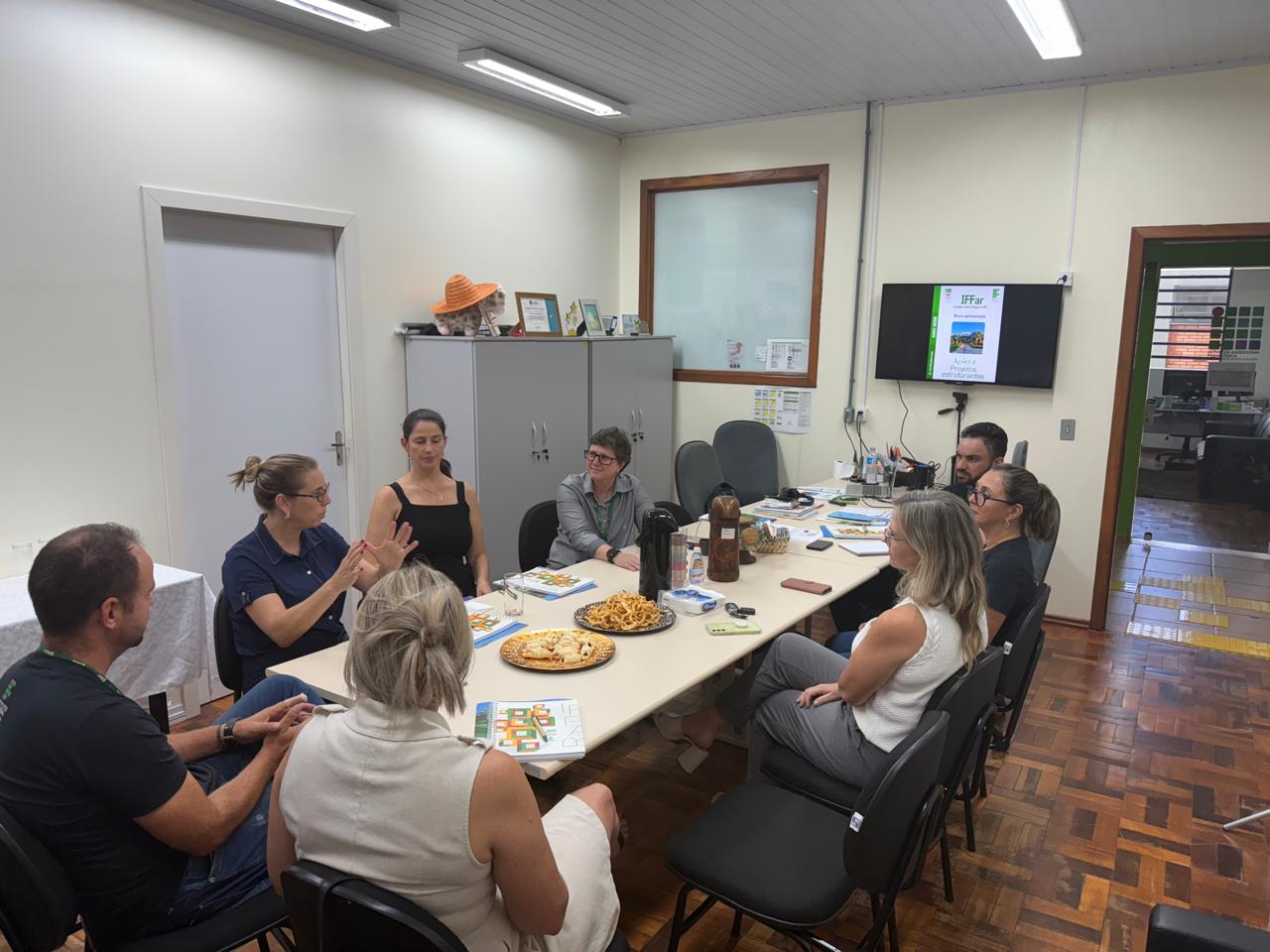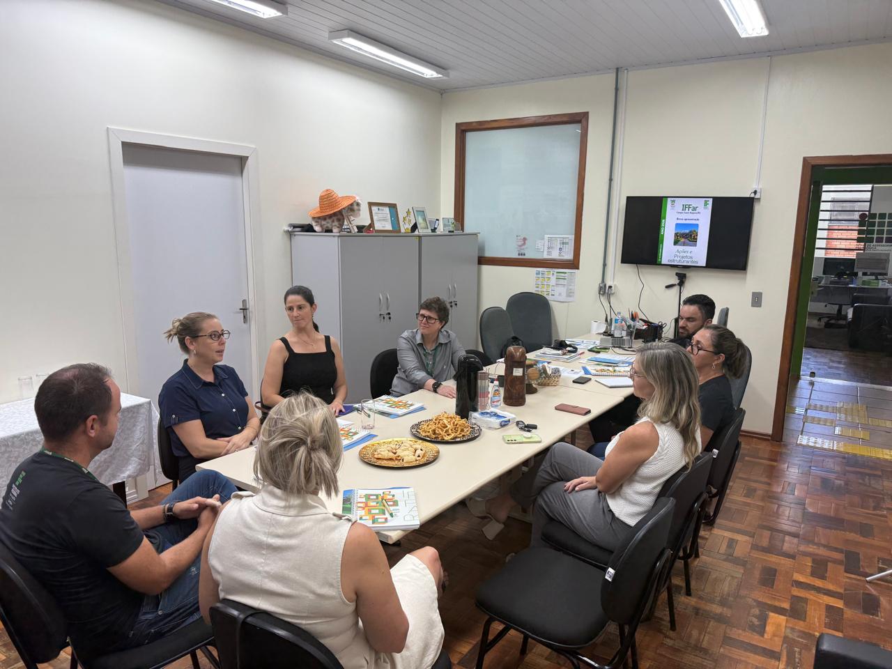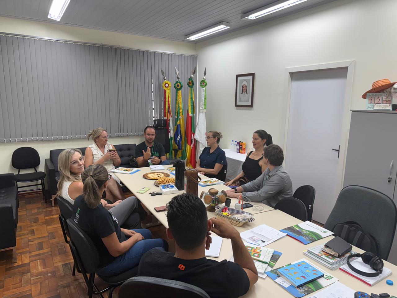 O IFFar – Campus Santo Augusto realizou na tarde de ontem, 12 de março, às 16h, no gabinete da Direção Geral, uma reunião com Prefeita de Santo Augusto, Lilian Fontoura Depiere, e com os vereadores da bancada do Partido Liberal - PL, Raquel Ceolin, Elenice Allebrandt e Maurício Duarte da Silva, os quais foram recebidos pela Diretora Geral, Márcia Fink; pela Diretora de Administração, Elizangela Sulzbach Pasa; pela Diretora de Planejamento e Desenvolvimento Institucional, Janice Boeira e pelo Diretor de Pesquisa, Extensão e Produção, Ricardo Paraginski.