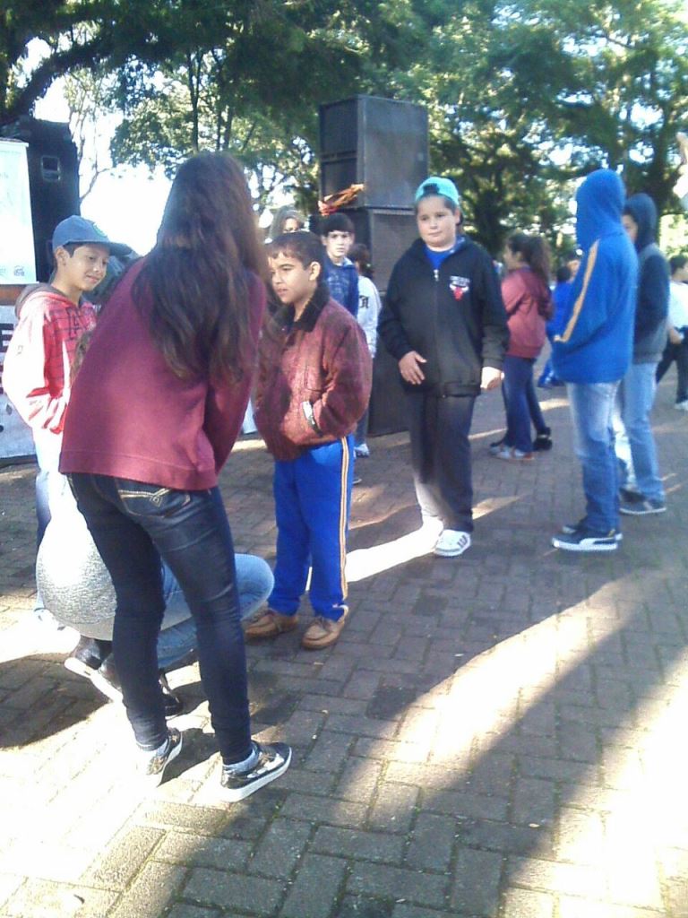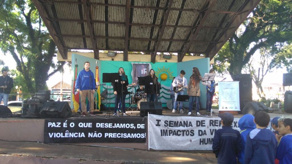 Os alunos do 3º ano do curo técnico em informática integrados ao ensino médio do IFFar - Campus Santo Augusto participaram da ação, juntamente com os estudantes de todas as escolas do município. Dentre as apresentações culturais realizadas na Praça Pompílio Silva, esteve a apresentação da Banda IFF Musical.