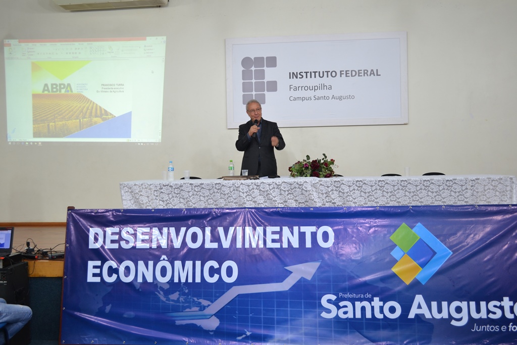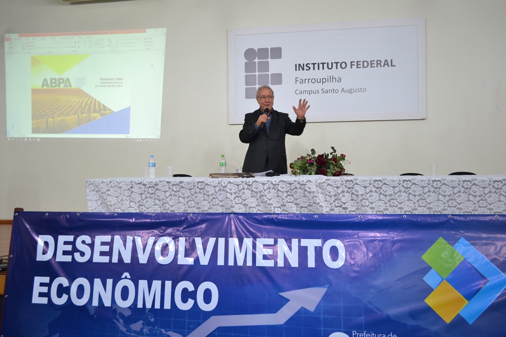 Na tarde de sexta-feira, dia 26, foi realizado no auditório do Instituto Federal Farroupilha - Campus Santo Augusto a segunda etapa do Seminário de Desenvolvimento Econômico com Francisco Sérgio Turra, ex-Ministro da Agricultura e atual presidente da Associação Brasileira de Proteína Animal – ABPA.