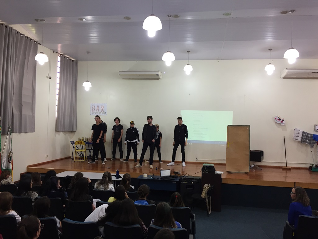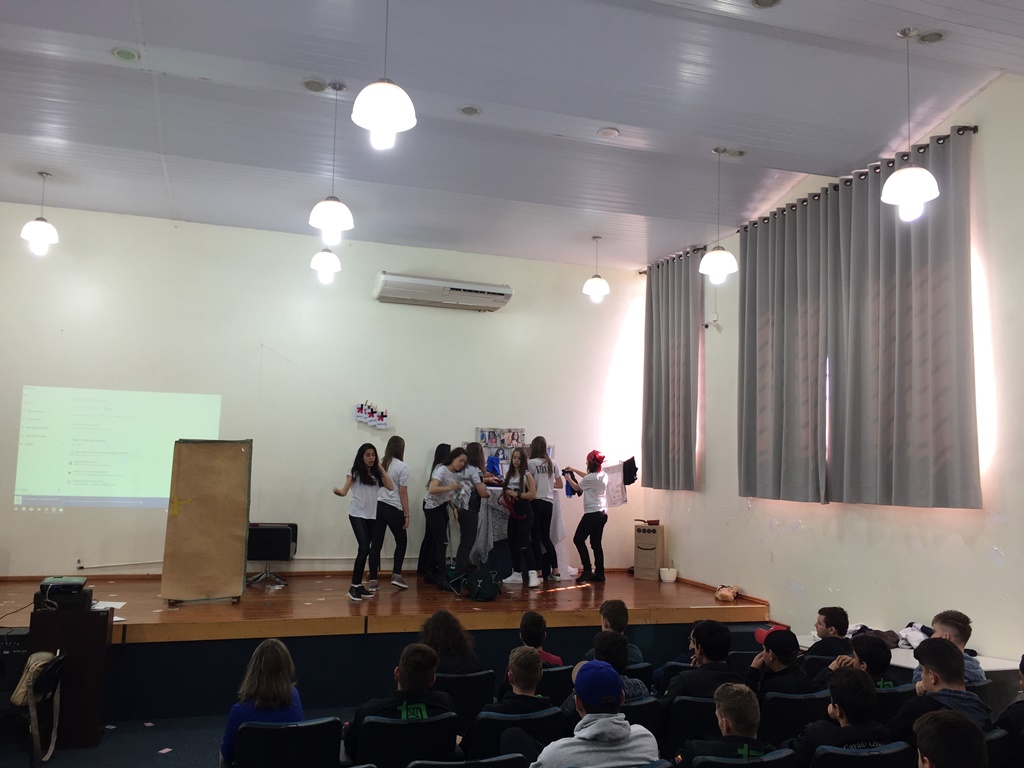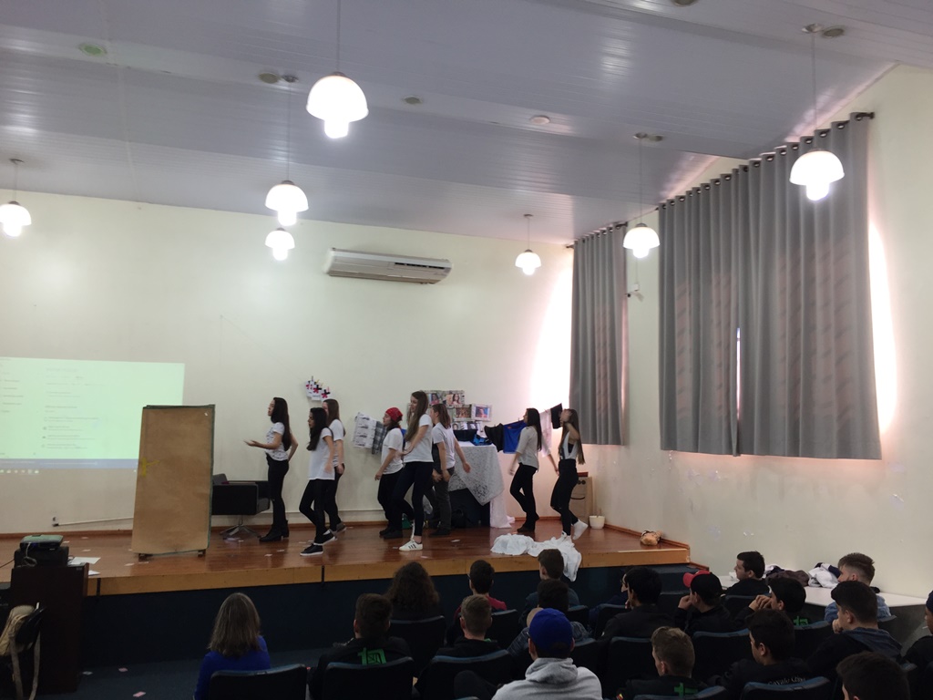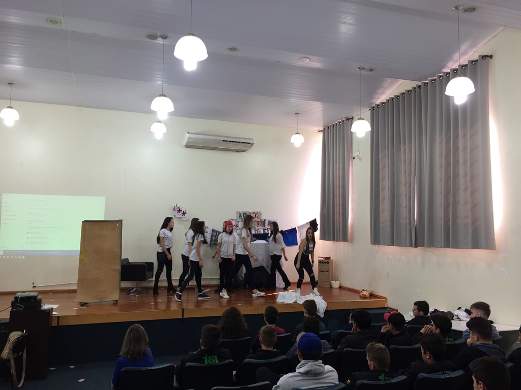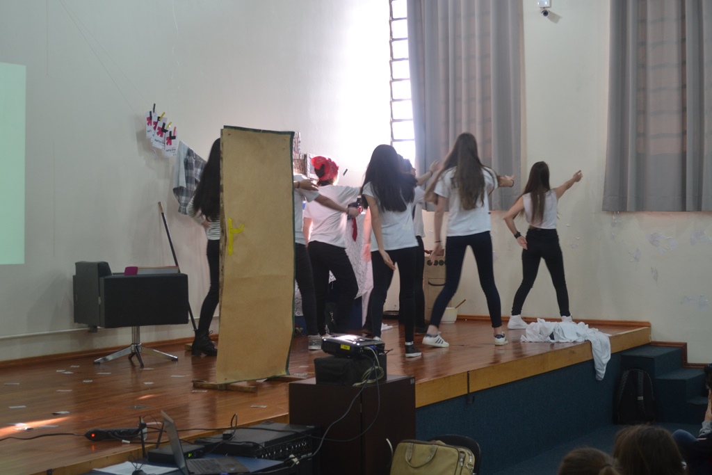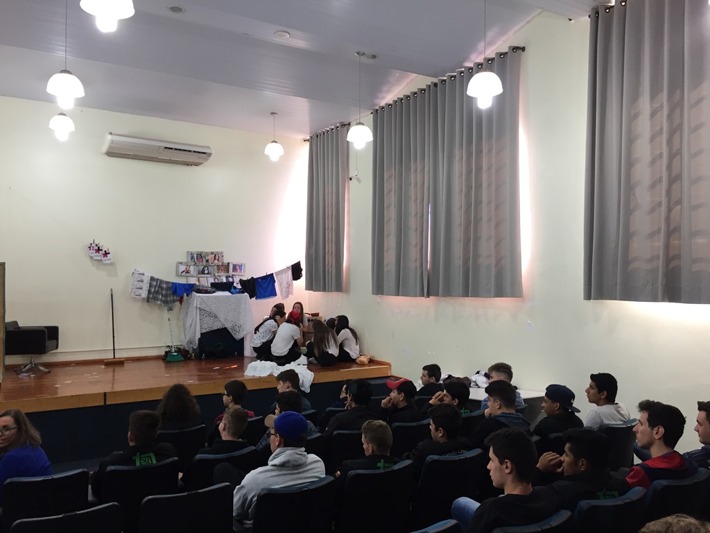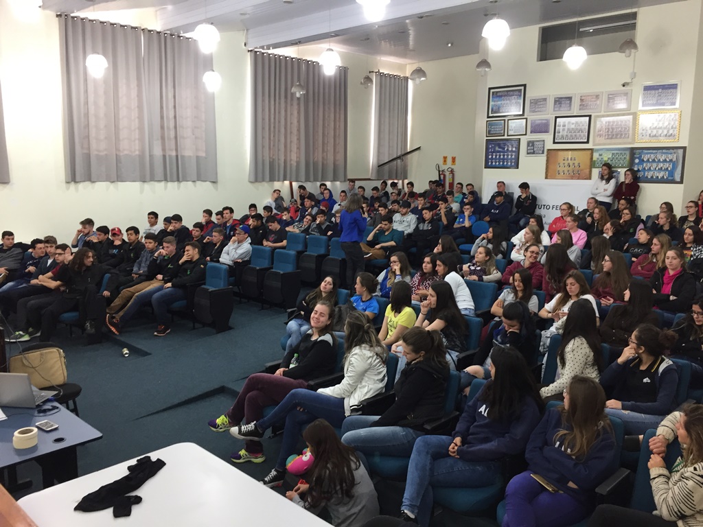 Na quarta-feira, dia 04, os alunos dos cursos técnicos foram reunidos pela manhã no auditório para participar das ações organizadas pela professora Claudia Alves dos Santos alusivas ao movimento ElesporElas (HeforShe). O evento iniciou com a apresentação dos alunos integrantes do Projeto de Ensino “A Situação das Mulheres na Contemporaneidade”, que representaram a música “Do lado de Dentro” da banda Los Hermanos. Na sequência, a professora Claudia explicou o que é o movimento ElesporElas (HeforShe) e trouxe dados sobre as diferenças entre homens e mulheres no Brasil, estimulando o debate sobre o tema entre os estudantes, os quais foram muito participativos.