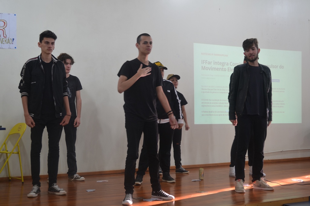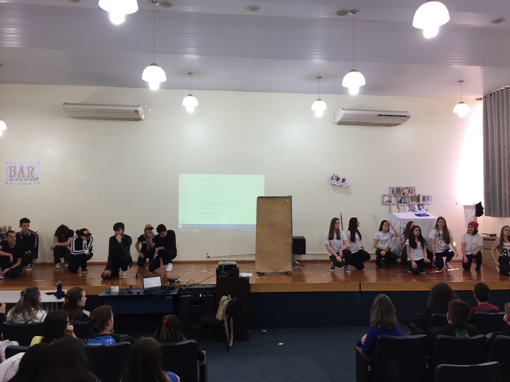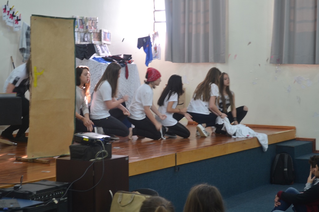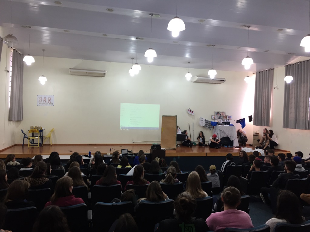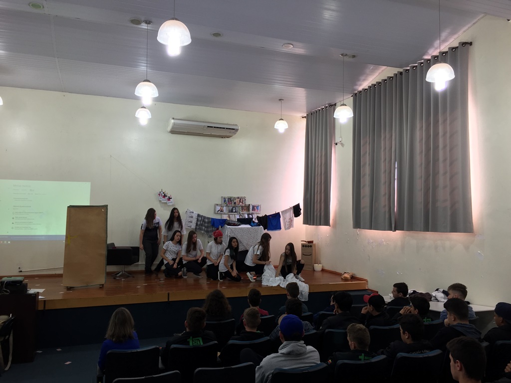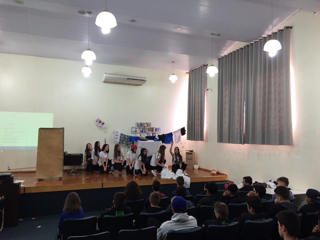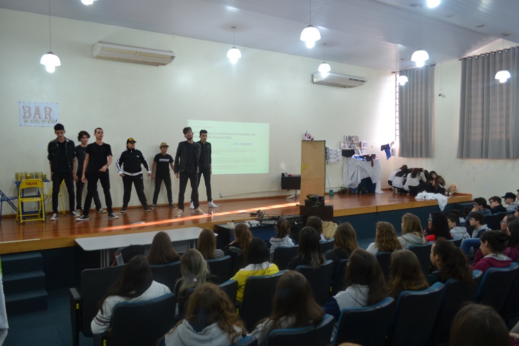 Na quarta-feira, dia 04, os alunos dos cursos técnicos foram reunidos pela manhã no auditório para participar das ações organizadas pela professora Claudia Alves dos Santos alusivas ao movimento ElesporElas (HeforShe). O evento iniciou com a apresentação dos alunos integrantes do Projeto de Ensino “A Situação das Mulheres na Contemporaneidade”, que representaram a música “Do lado de Dentro” da banda Los Hermanos. Na sequência, a professora Claudia explicou o que é o movimento ElesporElas (HeforShe) e trouxe dados sobre as diferenças entre homens e mulheres no Brasil, estimulando o debate sobre o tema entre os estudantes, os quais foram muito participativos.