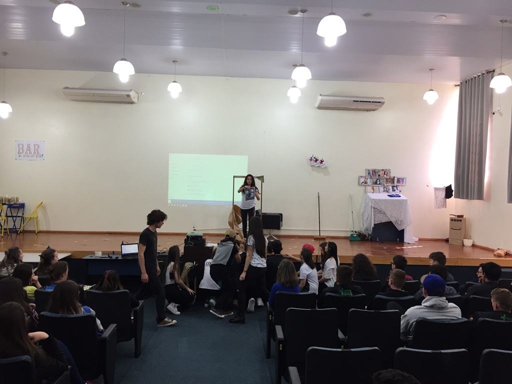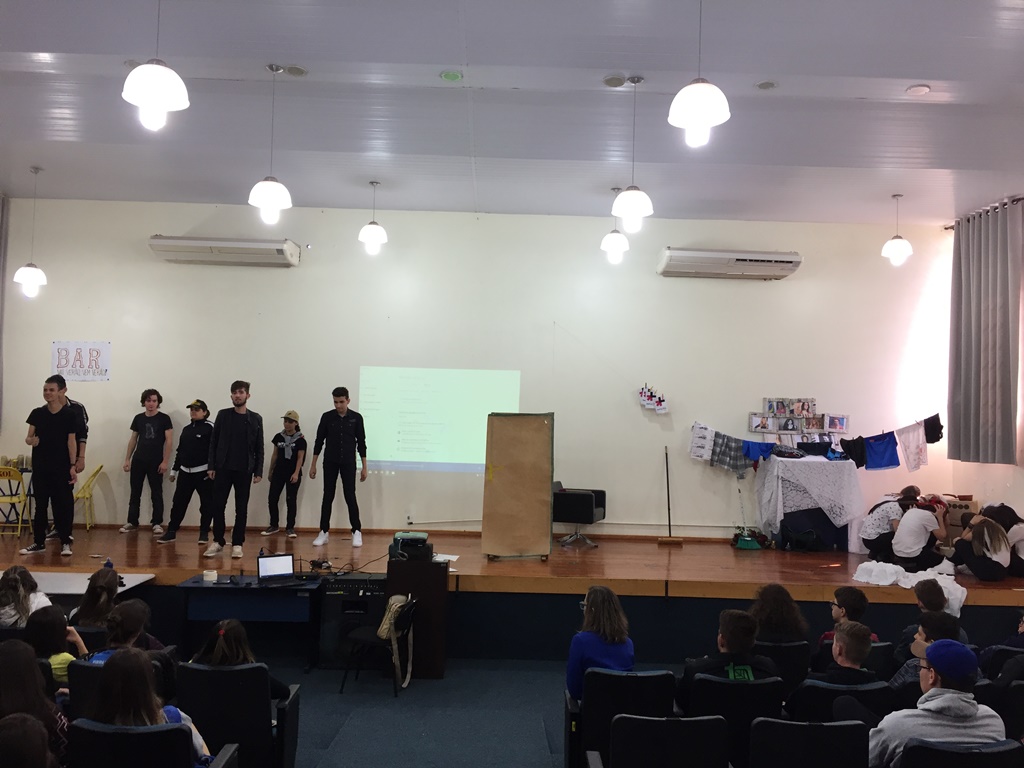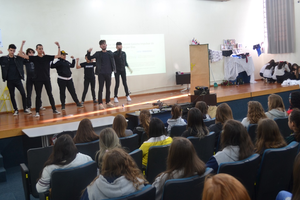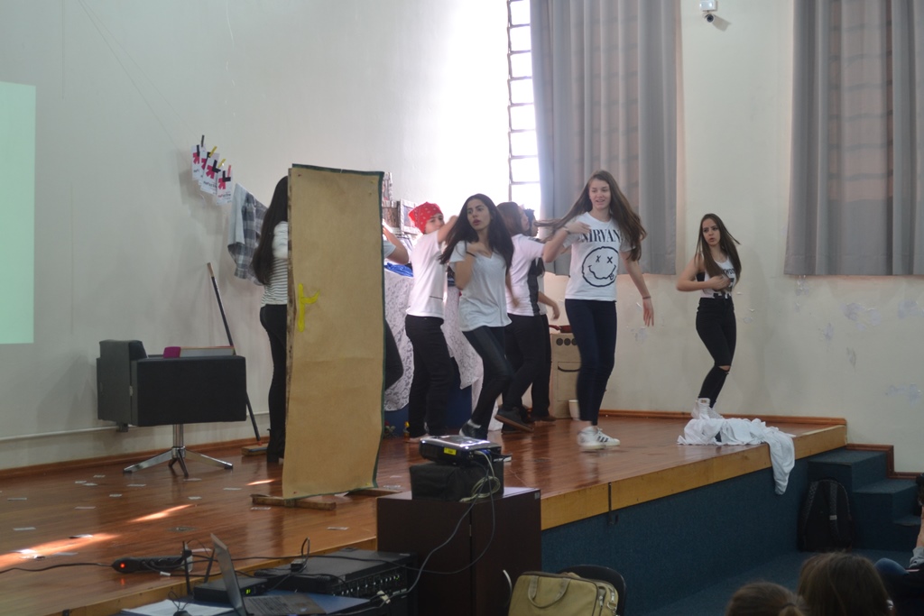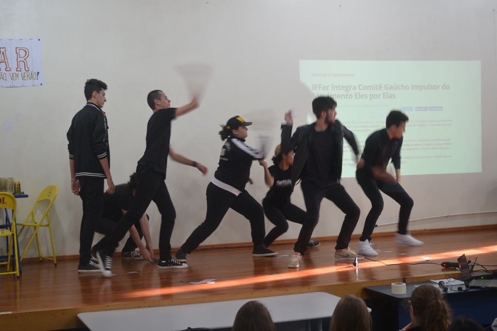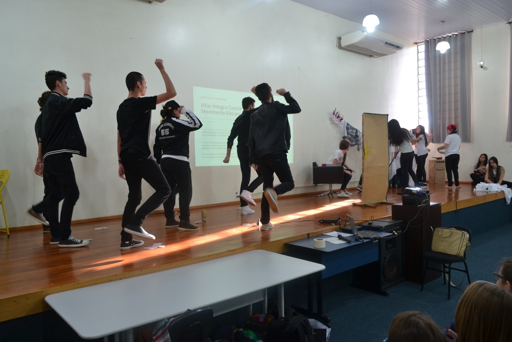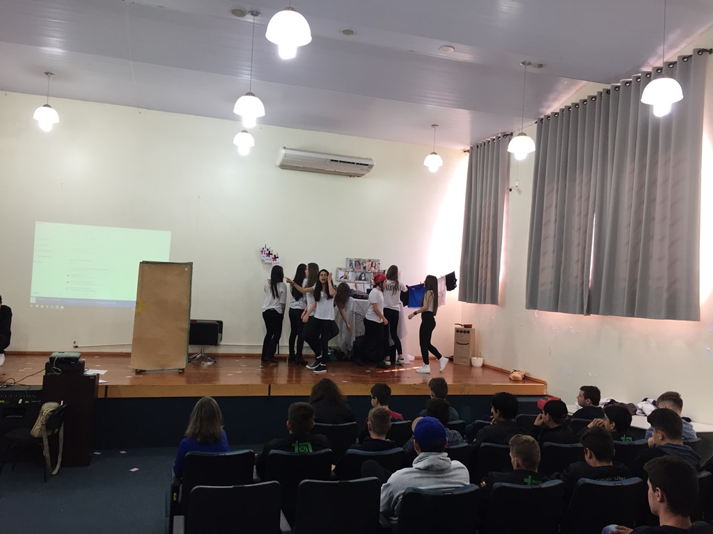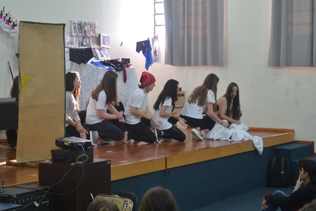Na quarta-feira, dia 04, os alunos dos cursos técnicos foram reunidos pela manhã no auditório para participar das ações organizadas pela professora Claudia Alves dos Santos alusivas ao movimento ElesporElas (HeforShe). O evento iniciou com a apresentação dos alunos integrantes do Projeto de Ensino “A Situação das Mulheres na Contemporaneidade”, que representaram a música “Do lado de Dentro” da banda Los Hermanos. Na sequência, a professora Claudia explicou o que é o movimento ElesporElas (HeforShe) e trouxe dados sobre as diferenças entre homens e mulheres no Brasil, estimulando o debate sobre o tema entre os estudantes, os quais foram muito participativos.