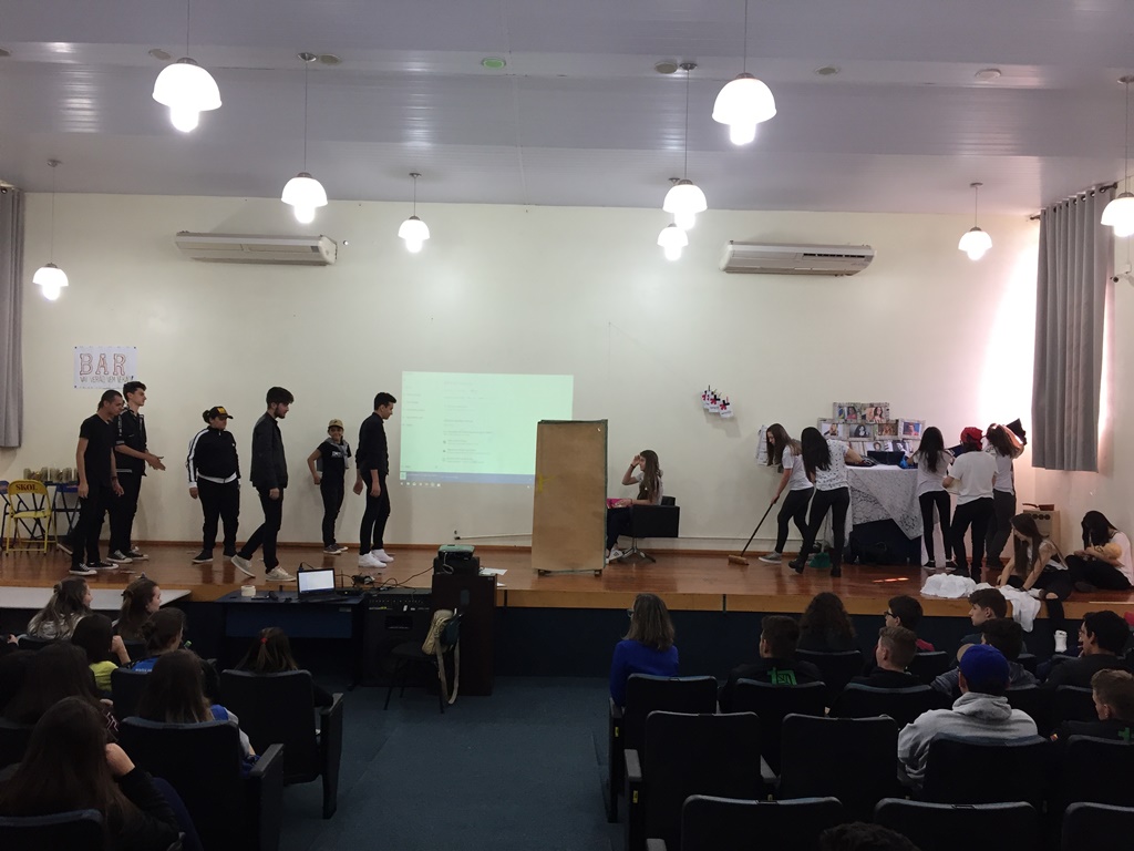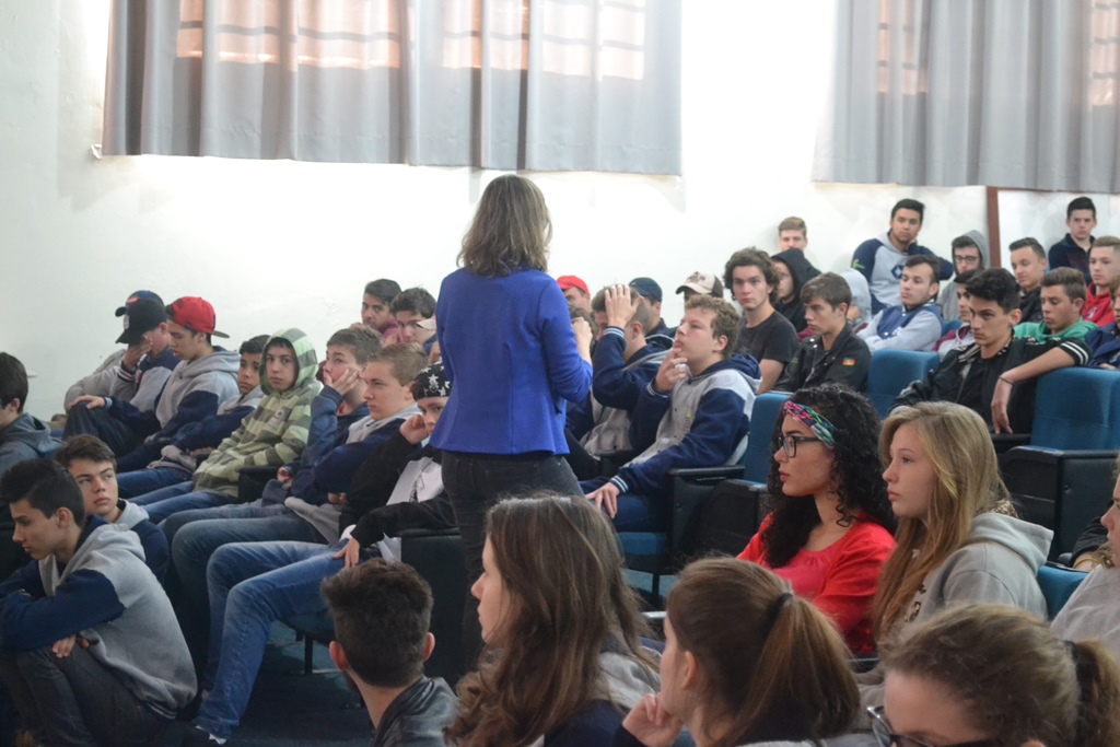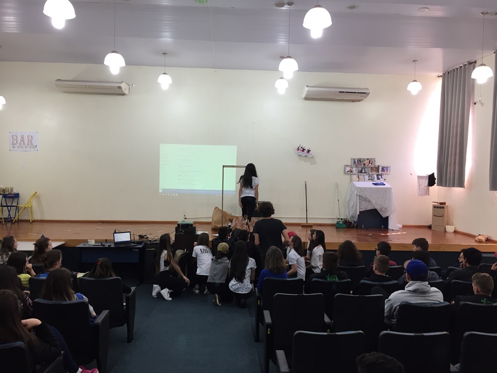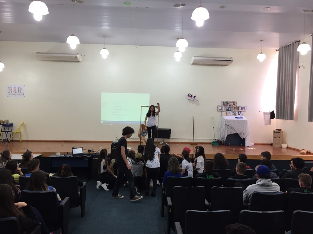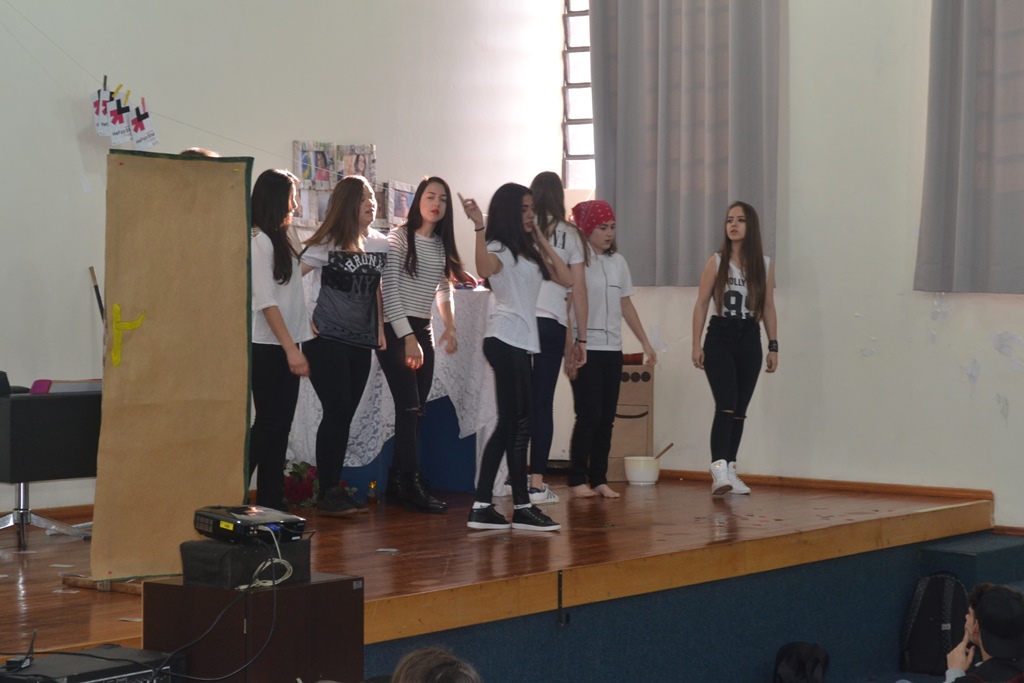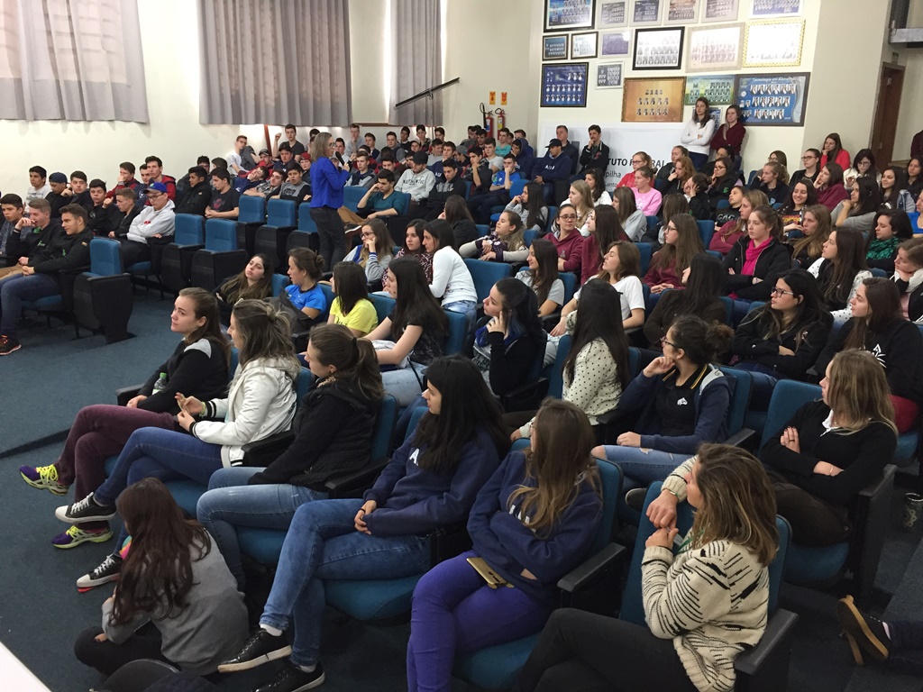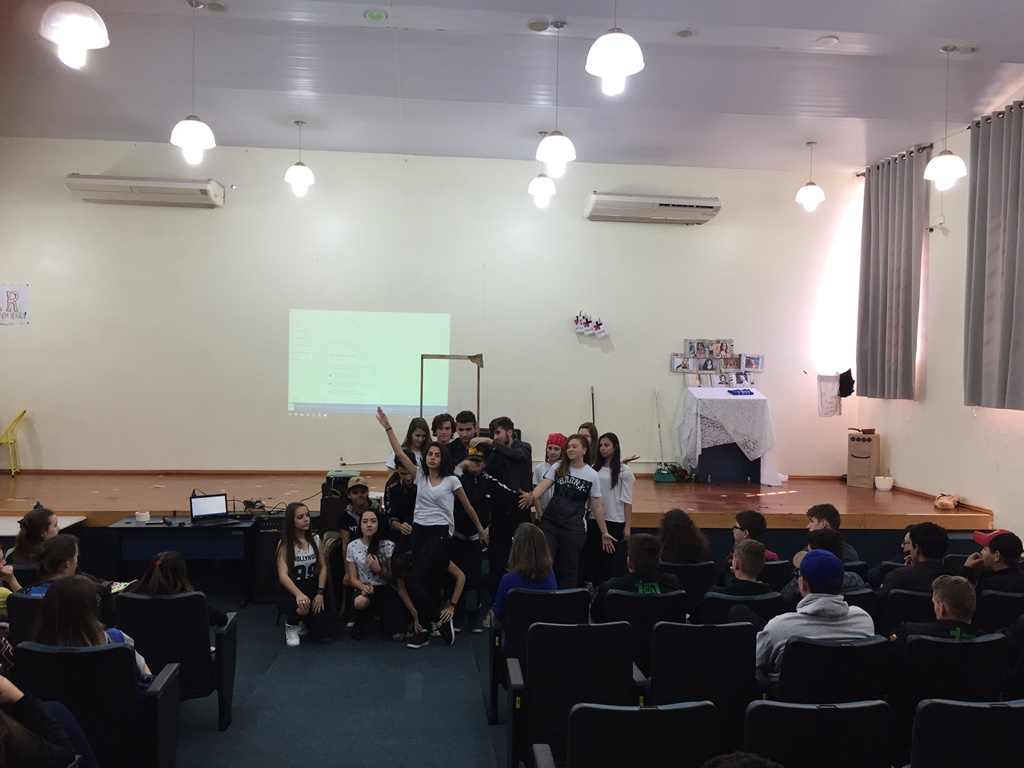 Na quarta-feira, dia 04, os alunos dos cursos técnicos foram reunidos pela manhã no auditório para participar das ações organizadas pela professora Claudia Alves dos Santos alusivas ao movimento ElesporElas (HeforShe). O evento iniciou com a apresentação dos alunos integrantes do Projeto de Ensino “A Situação das Mulheres na Contemporaneidade”, que representaram a música “Do lado de Dentro” da banda Los Hermanos. Na sequência, a professora Claudia explicou o que é o movimento ElesporElas (HeforShe) e trouxe dados sobre as diferenças entre homens e mulheres no Brasil, estimulando o debate sobre o tema entre os estudantes, os quais foram muito participativos.