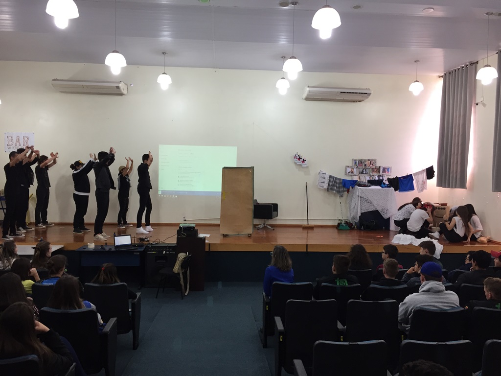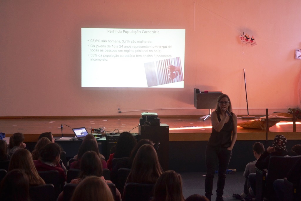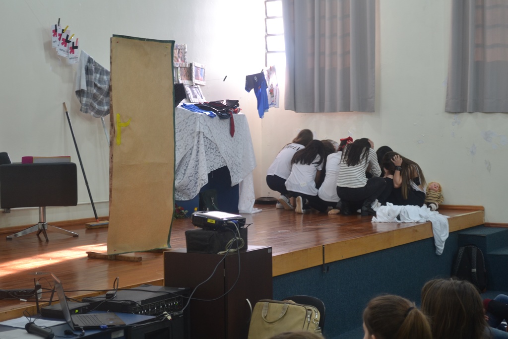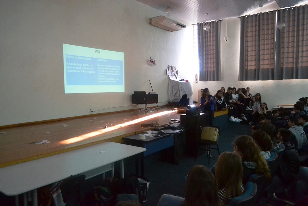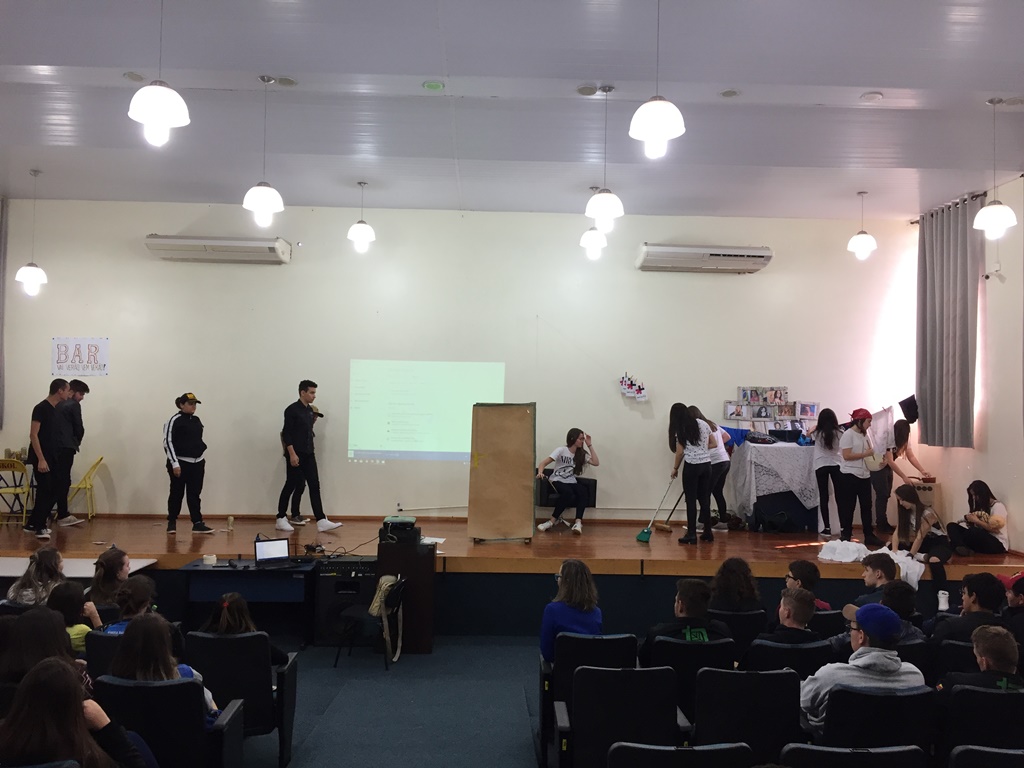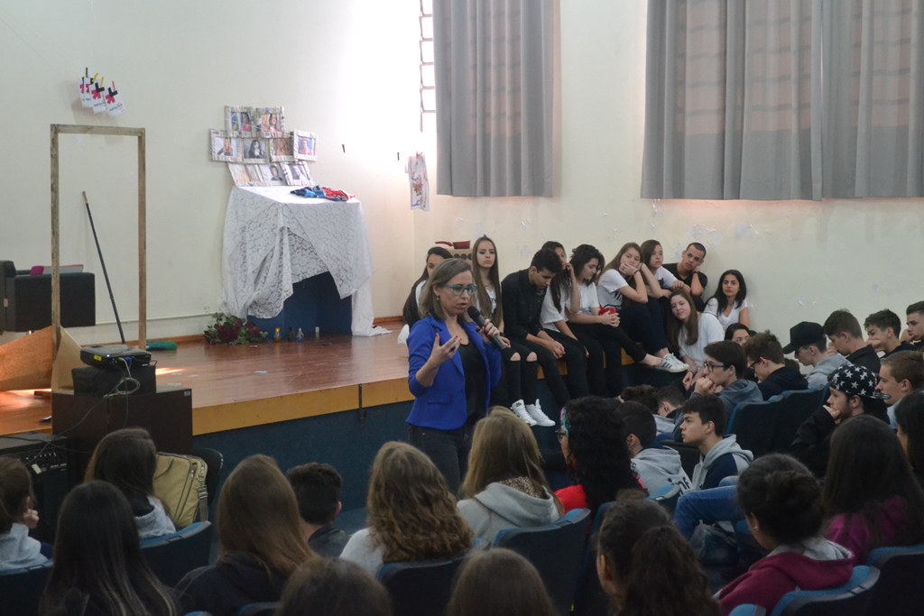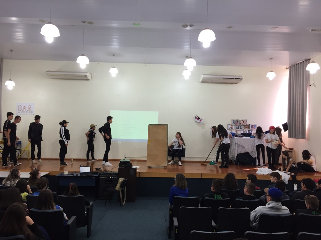Na quarta-feira, dia 04, os alunos dos cursos técnicos foram reunidos pela manhã no auditório para participar das ações organizadas pela professora Claudia Alves dos Santos alusivas ao movimento ElesporElas (HeforShe). O evento iniciou com a apresentação dos alunos integrantes do Projeto de Ensino “A Situação das Mulheres na Contemporaneidade”, que representaram a música “Do lado de Dentro” da banda Los Hermanos. Na sequência, a professora Claudia explicou o que é o movimento ElesporElas (HeforShe) e trouxe dados sobre as diferenças entre homens e mulheres no Brasil, estimulando o debate sobre o tema entre os estudantes, os quais foram muito participativos.
