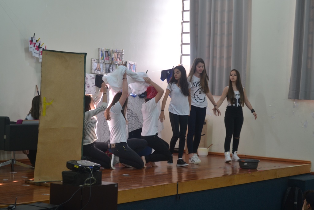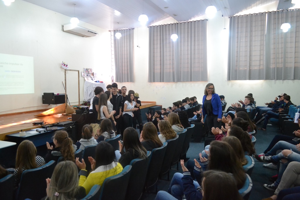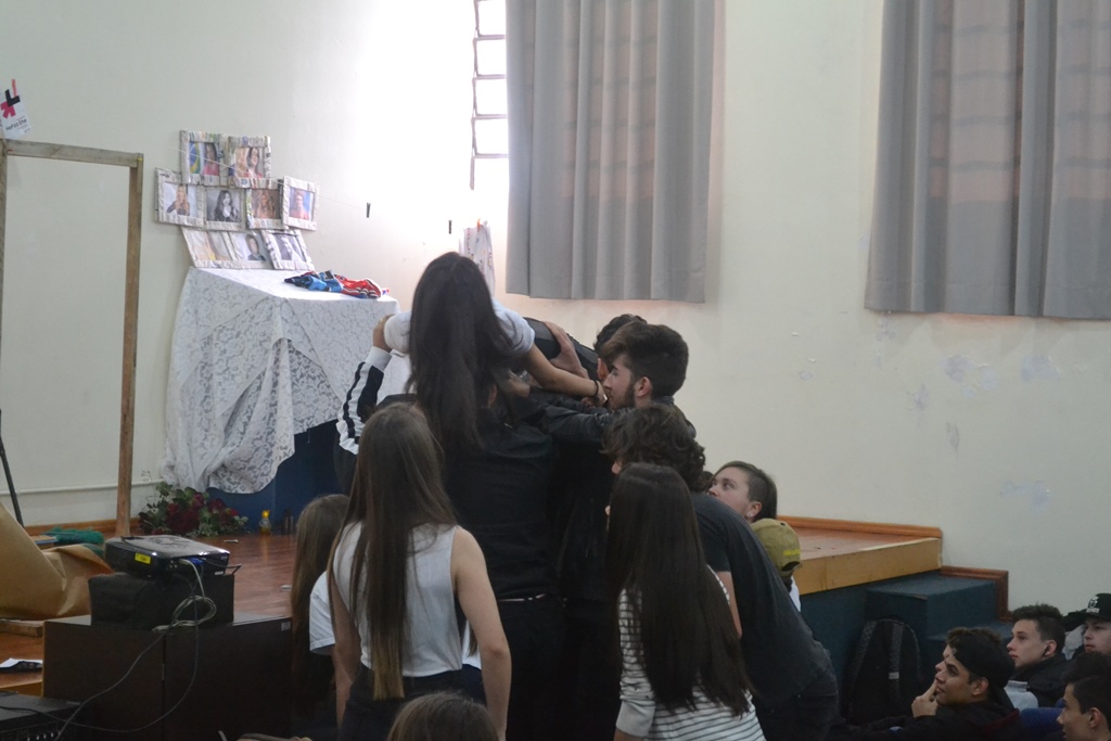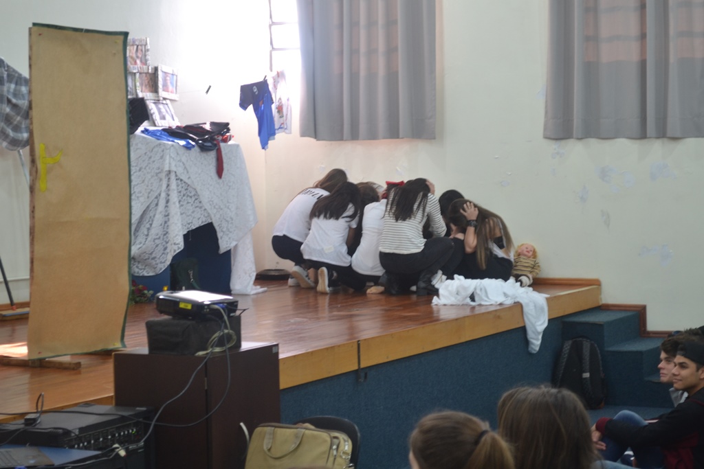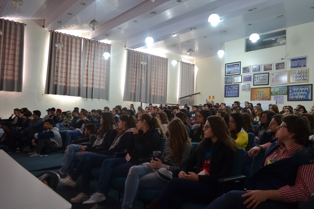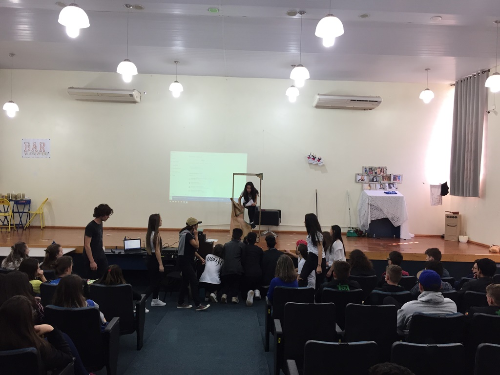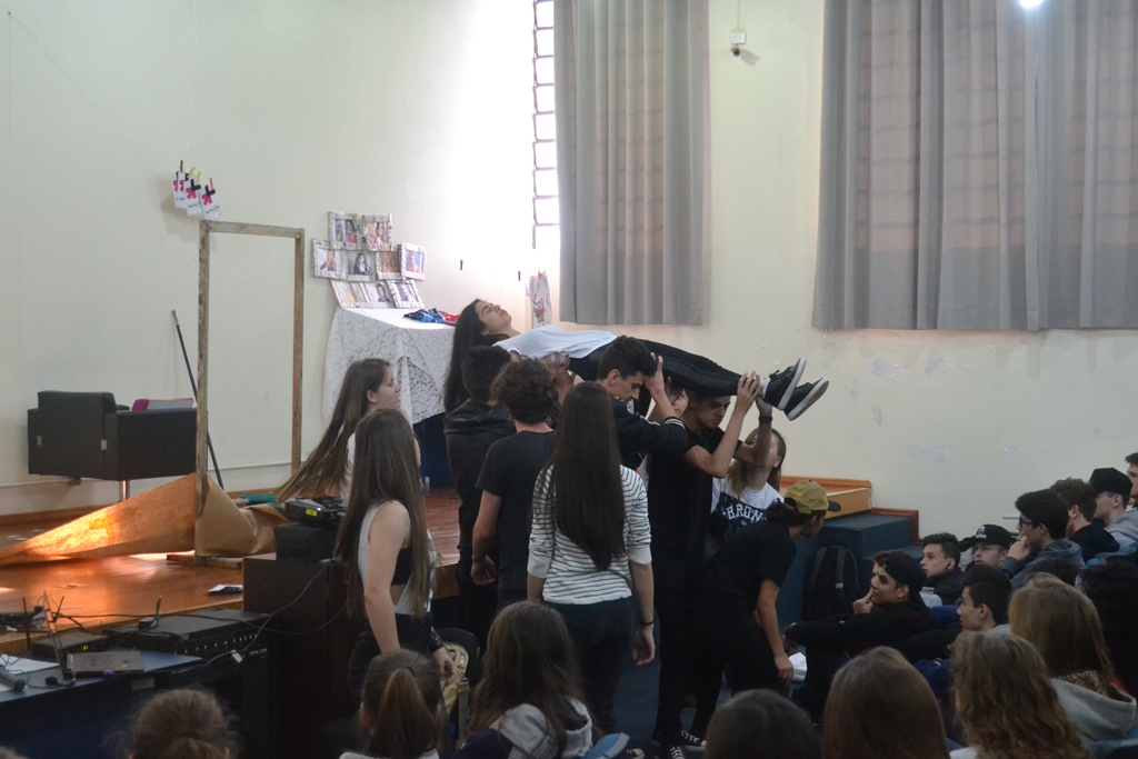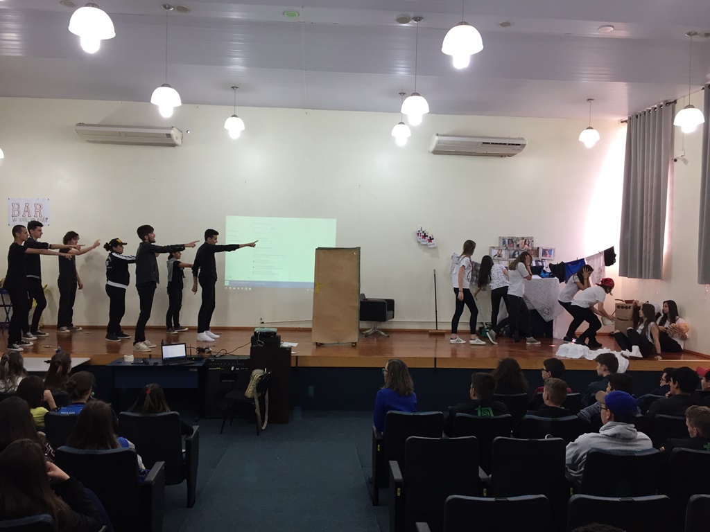 Na quarta-feira, dia 04, os alunos dos cursos técnicos foram reunidos pela manhã no auditório para participar das ações organizadas pela professora Claudia Alves dos Santos alusivas ao movimento ElesporElas (HeforShe). O evento iniciou com a apresentação dos alunos integrantes do Projeto de Ensino “A Situação das Mulheres na Contemporaneidade”, que representaram a música “Do lado de Dentro” da banda Los Hermanos. Na sequência, a professora Claudia explicou o que é o movimento ElesporElas (HeforShe) e trouxe dados sobre as diferenças entre homens e mulheres no Brasil, estimulando o debate sobre o tema entre os estudantes, os quais foram muito participativos.