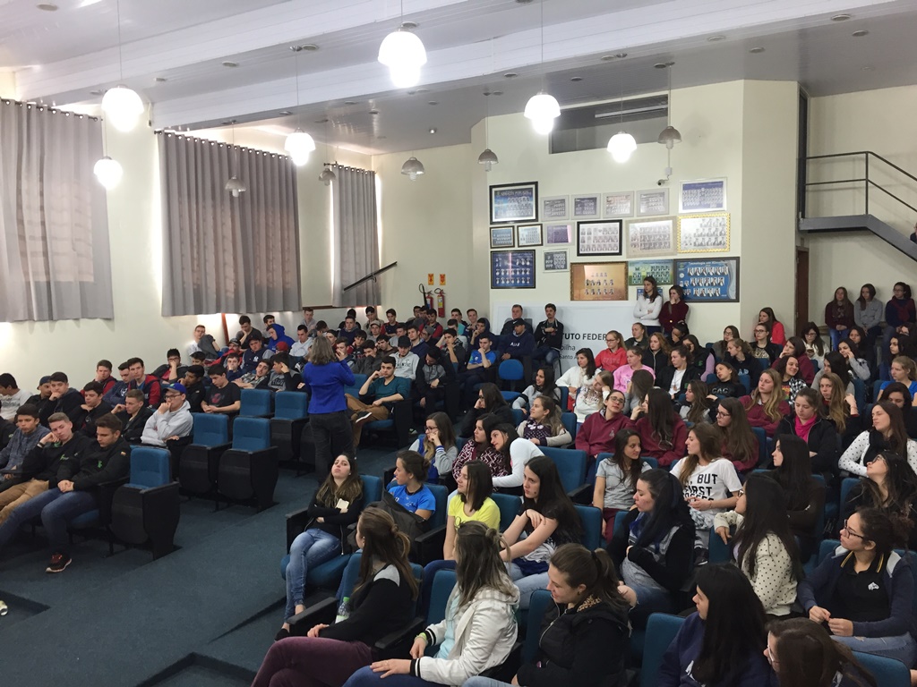 Na terça-feira, dia 03, as professoras Clarinês Hames, Cláudia Alves dos Santos e Téoura Benetti, realizaram às 19h, no auditório, para os pais dos alunos dos cursos técnicos integrados ao ensino médio uma socialização das ações do Núcleo de Gênero e Diversidade Sexual - Nugedis em 2017. Também foi feita uma explanação sobre o movimento ElesporElas (HeforShe), sobre questões de gênero e foram apresentados dados estatísticos sobre LGBT (Lésbicas, gays, bissexuais e transexuais). Segundo a professora Clarinês, os pais gostaram muito de participar, interagiram, se manifestaram e, por fim, sugeriram que houvessem mais momentos como esses.
