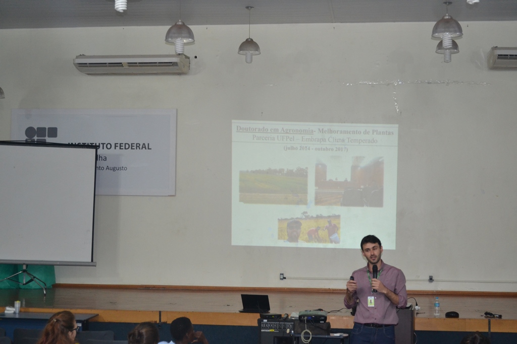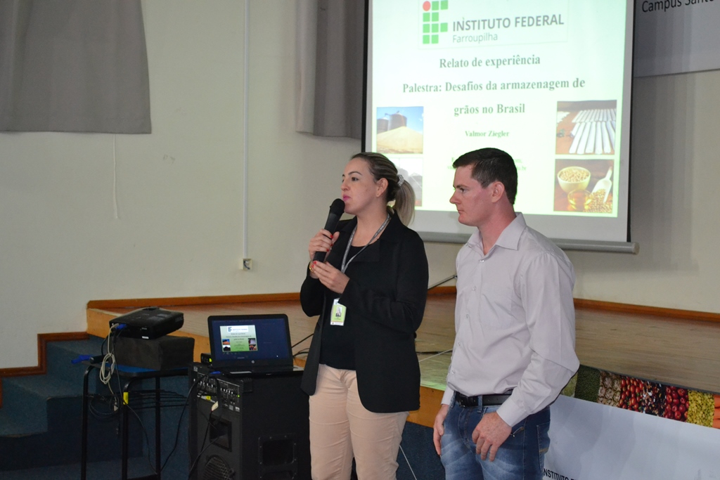 A palestra de abertura foi ministrada pelo egresso de Tecnologia em Alimentos, Dr. Valmor Ziegler, sobre “Armazenamento de grãos, qualidade e efeitos das condições de armazenamento em produtos derivados”, seguida pela palestra “Plantas Alimentícias não convencionais e aplicação em produtos lácteos” com a servidora do Campus Júlio de Castilhos, a Mestre e Doutoranda, Alice de Souza Ribeiro.
