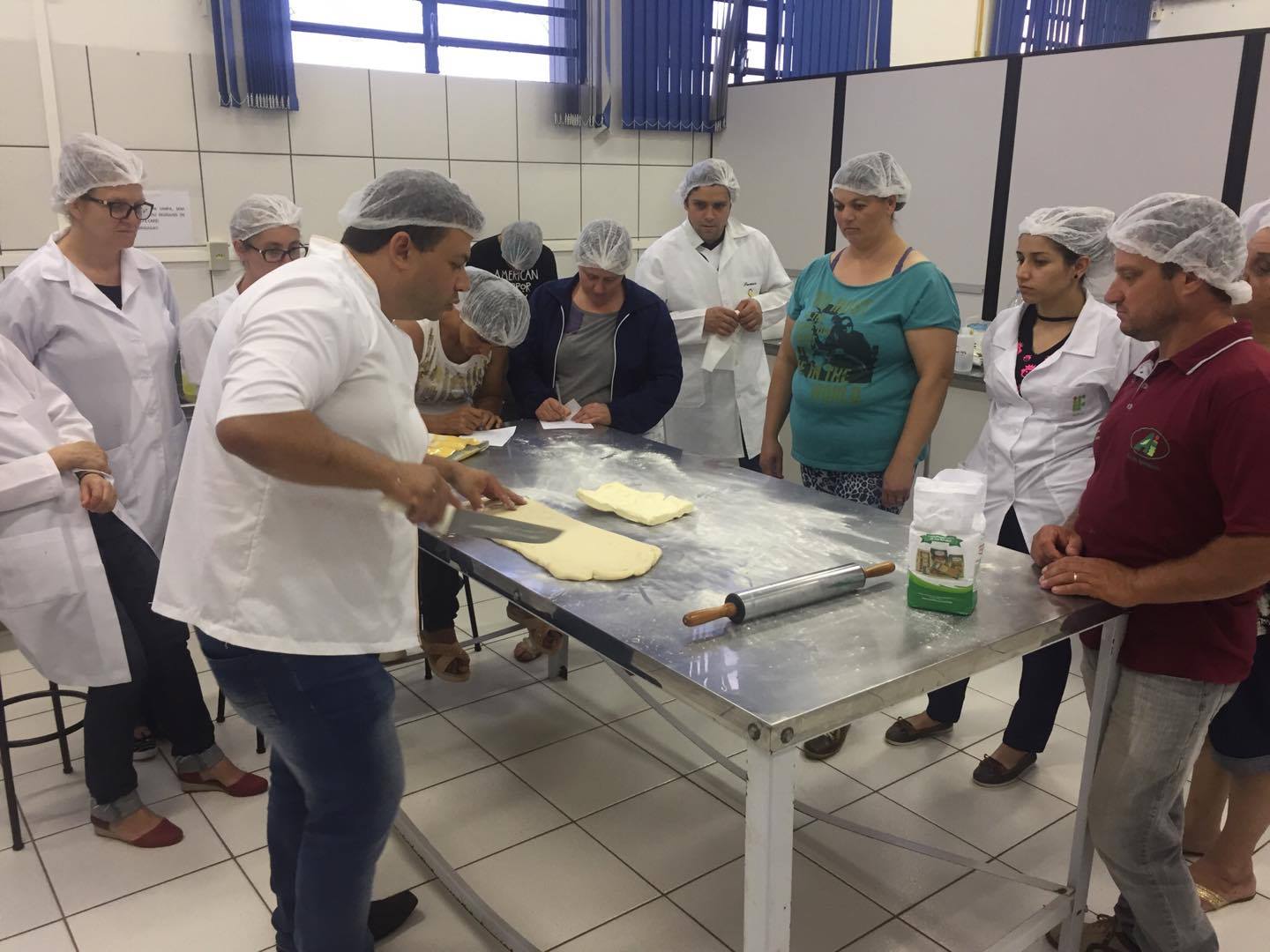 A oficina, ministrada pelo Técnico do Moinho Ijuí e representante da farinha Argentina, Adelar Aguiler, ensinou os alunos a produzirem croissants doces e salgados, empadas entre outras delícias.