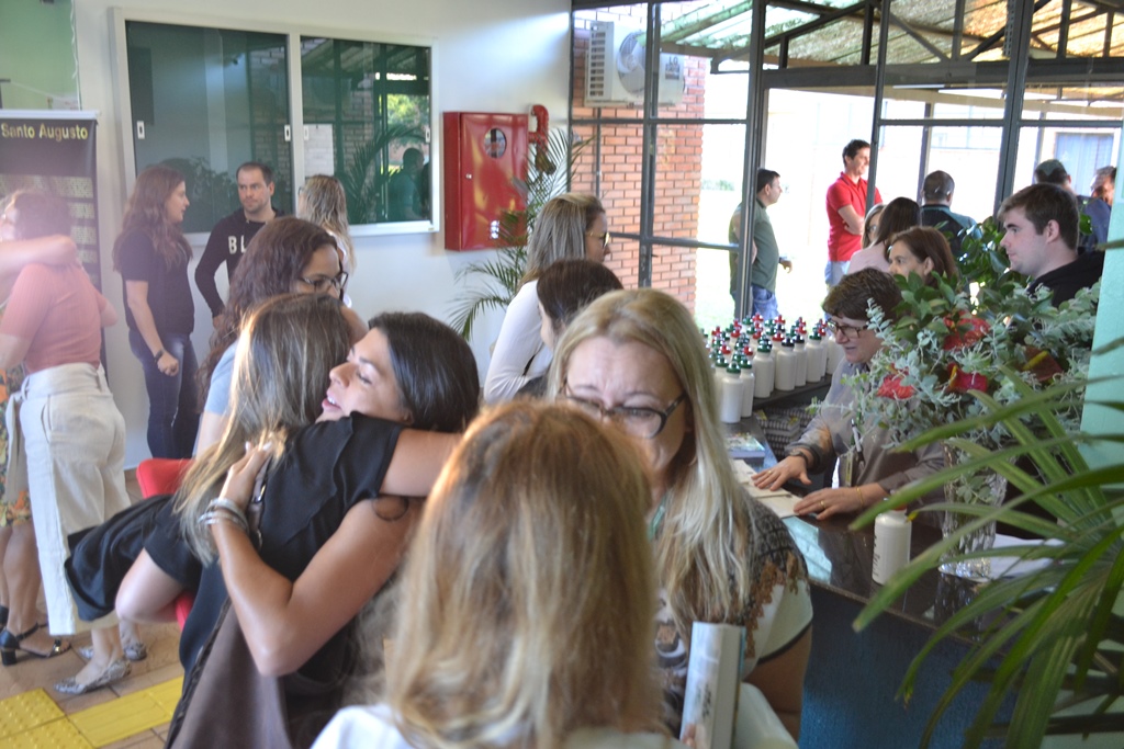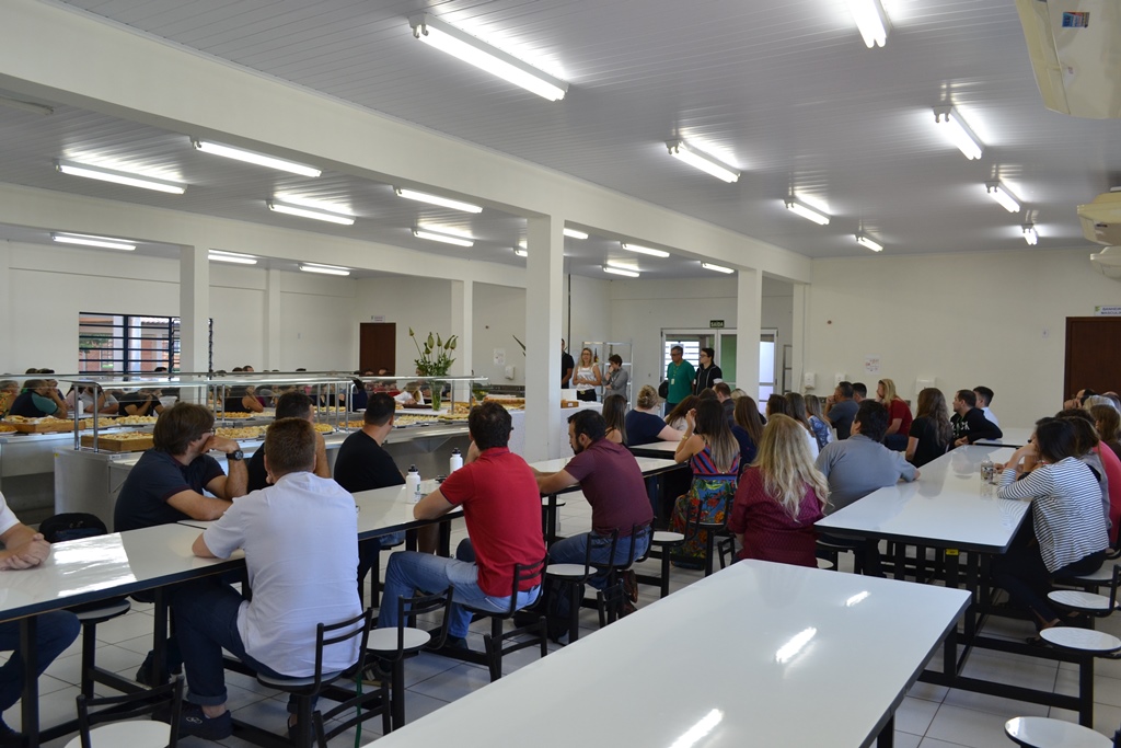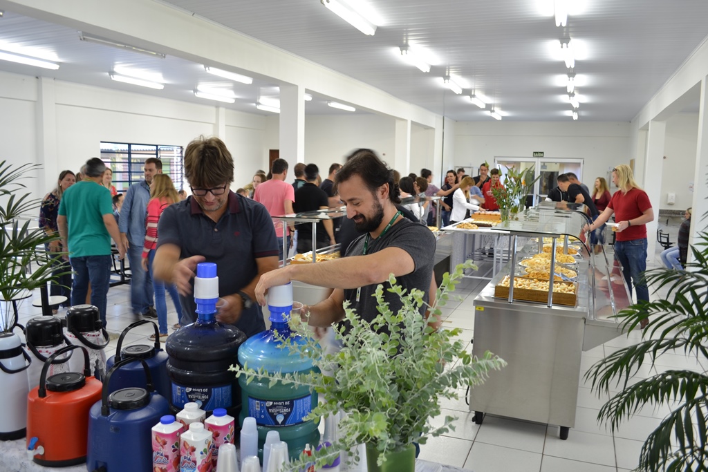 O IFFar – Campus Santo Augusto deu início as atividades letivas 2018 na manhã de ontem, dia 15 de fevereiro. Na ocasião, os servidores foram recebidos no refeitório para café de boas vindas. Na chegada todos receberam da equipe diretiva um squeeze personalizado e a agenda 2018. Após o café, os servidores ligados ao ensino participaram de uma reunião pedagógica no auditório, coordenada pela Direção de Ensino, onde foram repassadas orientações sobre o primeiro semestre letivo.