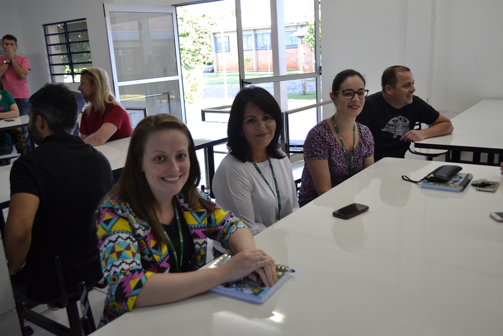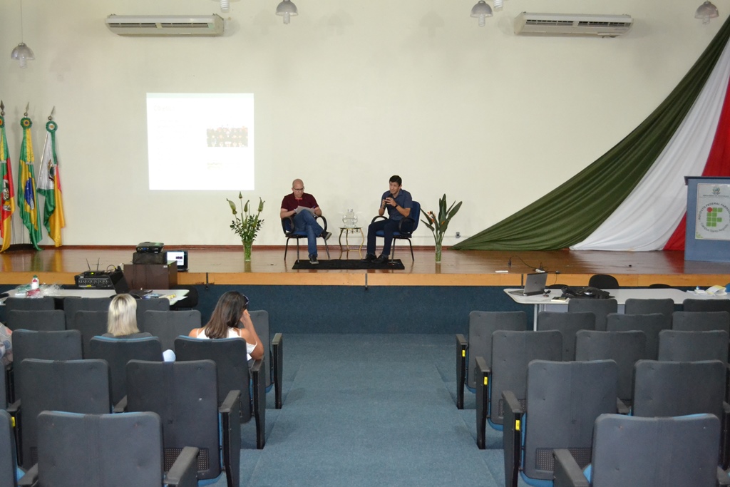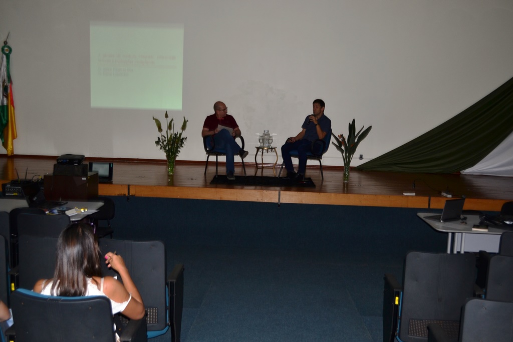 A programação continuou à tarde, com uma atividade de formação continuada destinada à todos os servidores, que teve como palestrantes os professores doutores Osmar Lottermann e Sidinei Pithan da Silva, os quais falaram sobre “A gênese do Currículo Integrado: referenciais teóricos e implicações pedagógicas”. O debate foi mediado pela comissão de formação continuada.