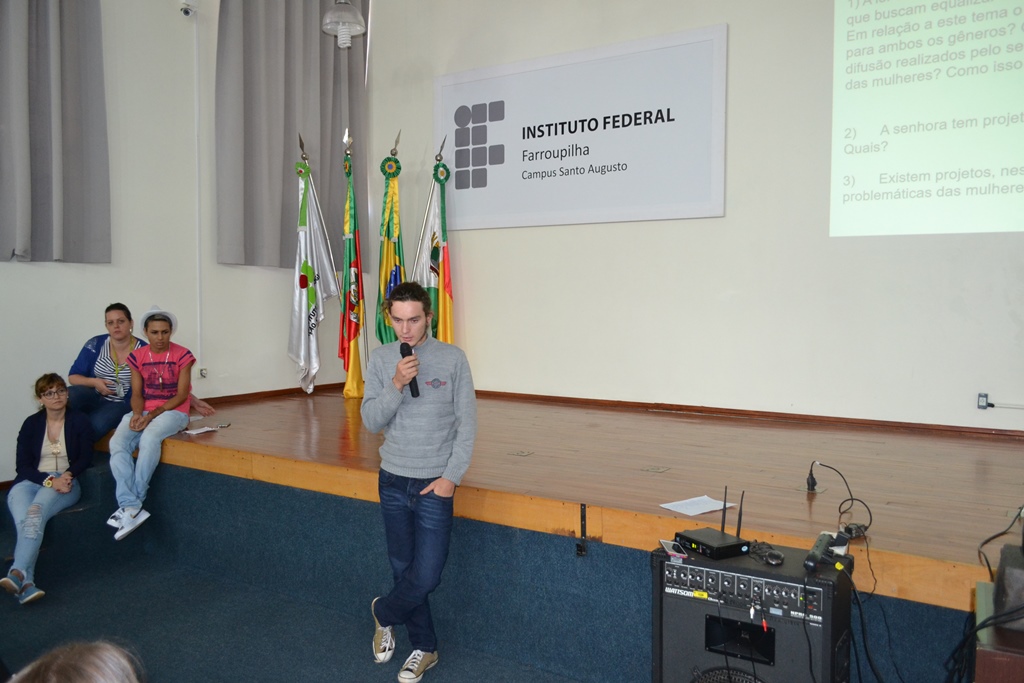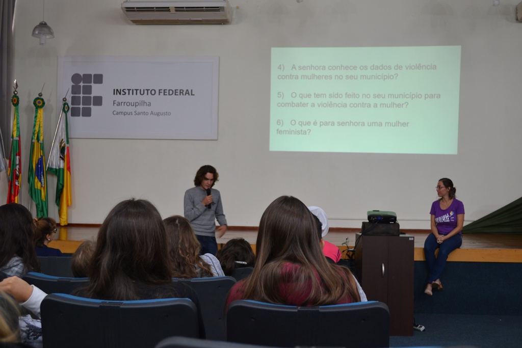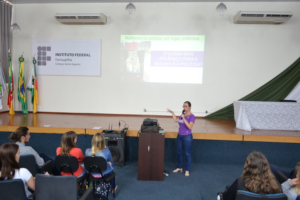 Os alunos dos cursos técnicos integrados ao ensino médio do IFFar – Campus Santo Augusto participaram na manhã de quarta-feira, dia 07, de uma programação alusiva ao Dia Internacional da Mulher. A atividade foi coordenada pela professora Claudia Alves dos Santos, responsável pelo projeto de Ensino “As Mulheres na Política: um lugar polêmico”.
