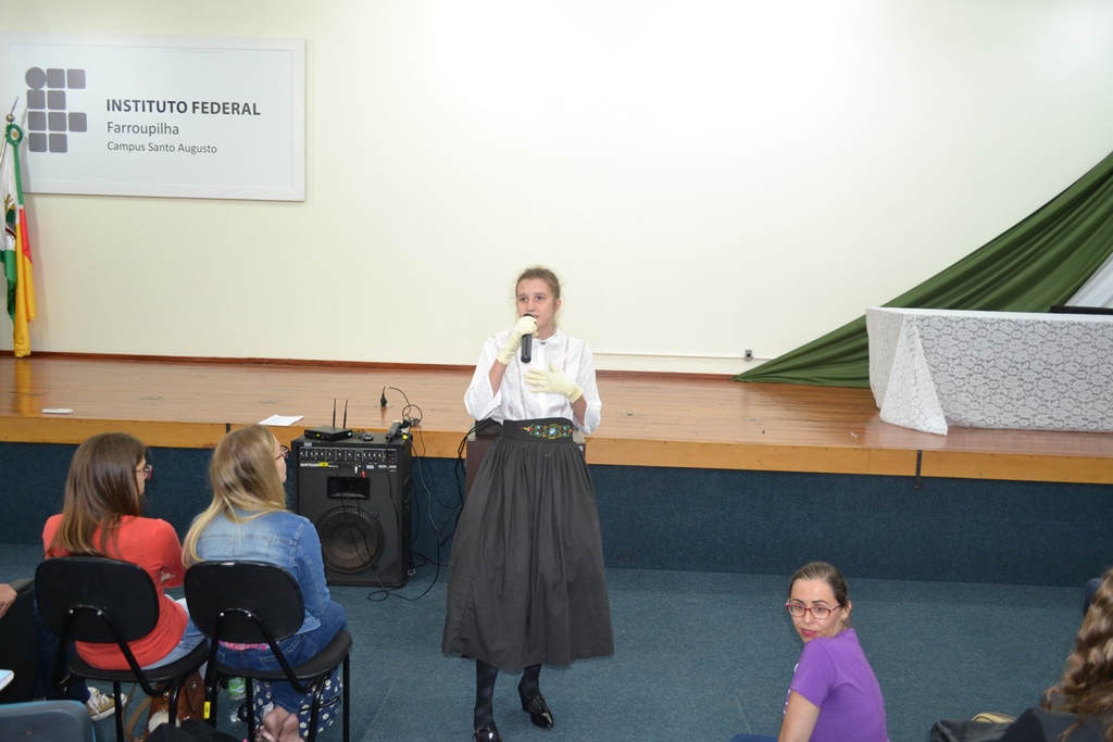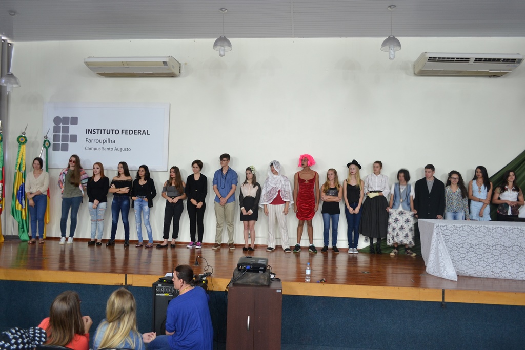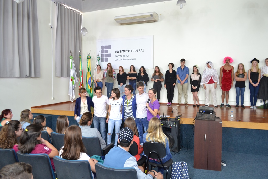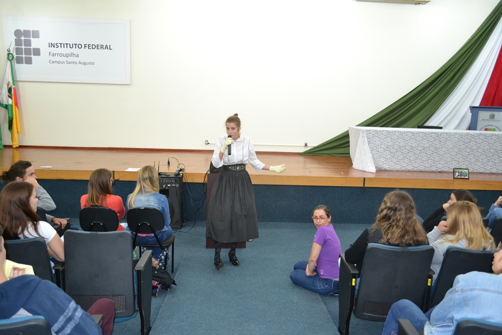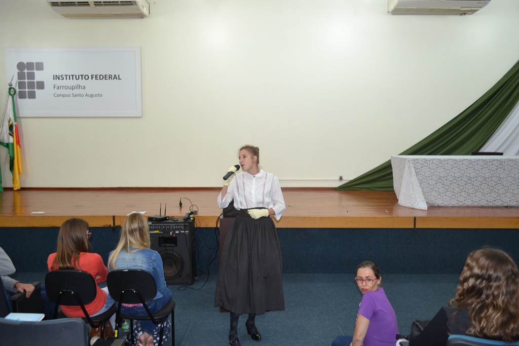 Ao final da atividade foi apresentado o trabalho realizado pelos professores de linguagens sobre “As mulheres polêmicas na história”, que deram origem aos painéis expostos no hall de entrada. Enquanto o professor João Paulo Massoti falava sobre o projeto estudantes caracterizados pelas personagens pesquisadas iam entrando no auditório e se colocando no palco. A pesquisa foi desenvolvida com os alunos dos cursos técnicos integrados ao ensino médio, buscando homenagear algumas personalidades femininas que se destacaram em sua época.