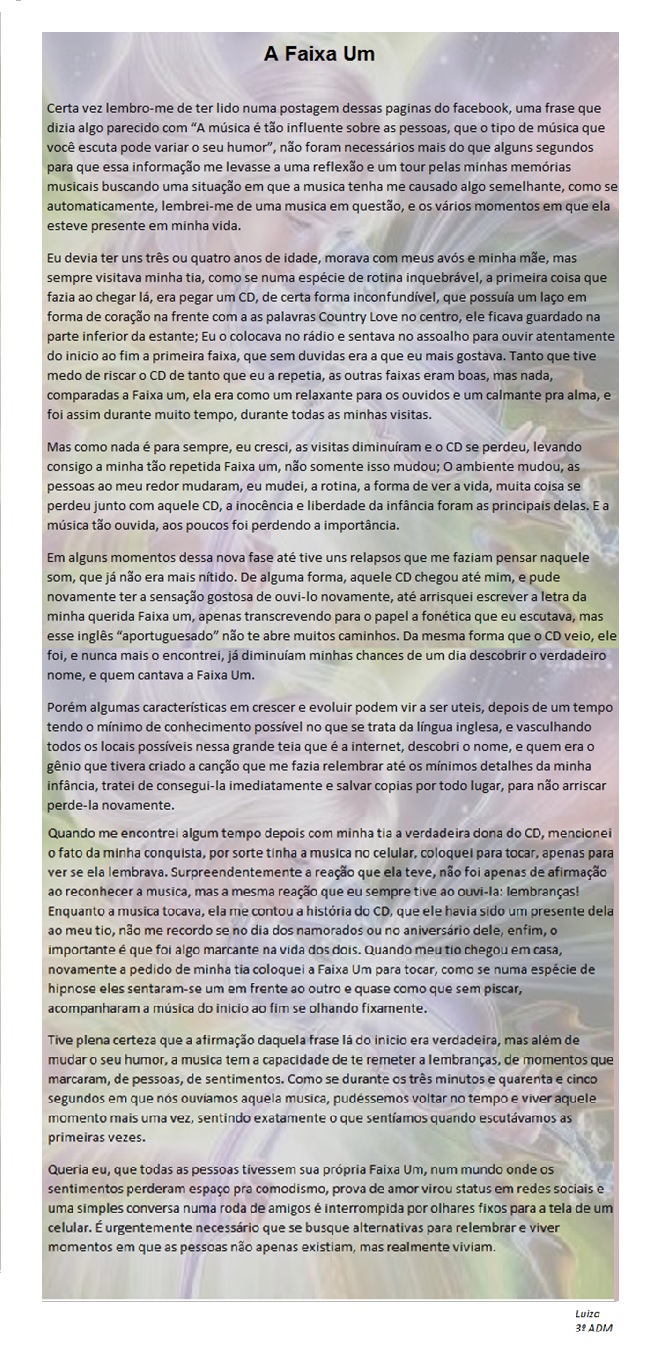 Confira algumas das crônicas da turma, selecionadas por ele.