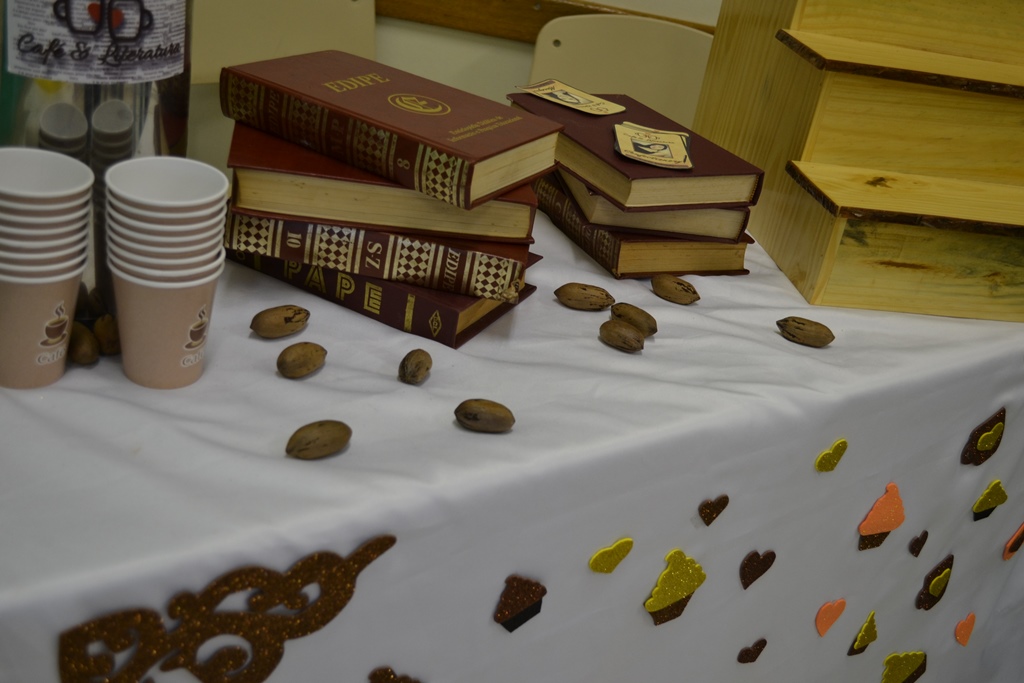 - Café Literatura, cupcake "Vanilla and Walnuts, apresentou a combinação de doces, com café e uma boa leitura.
