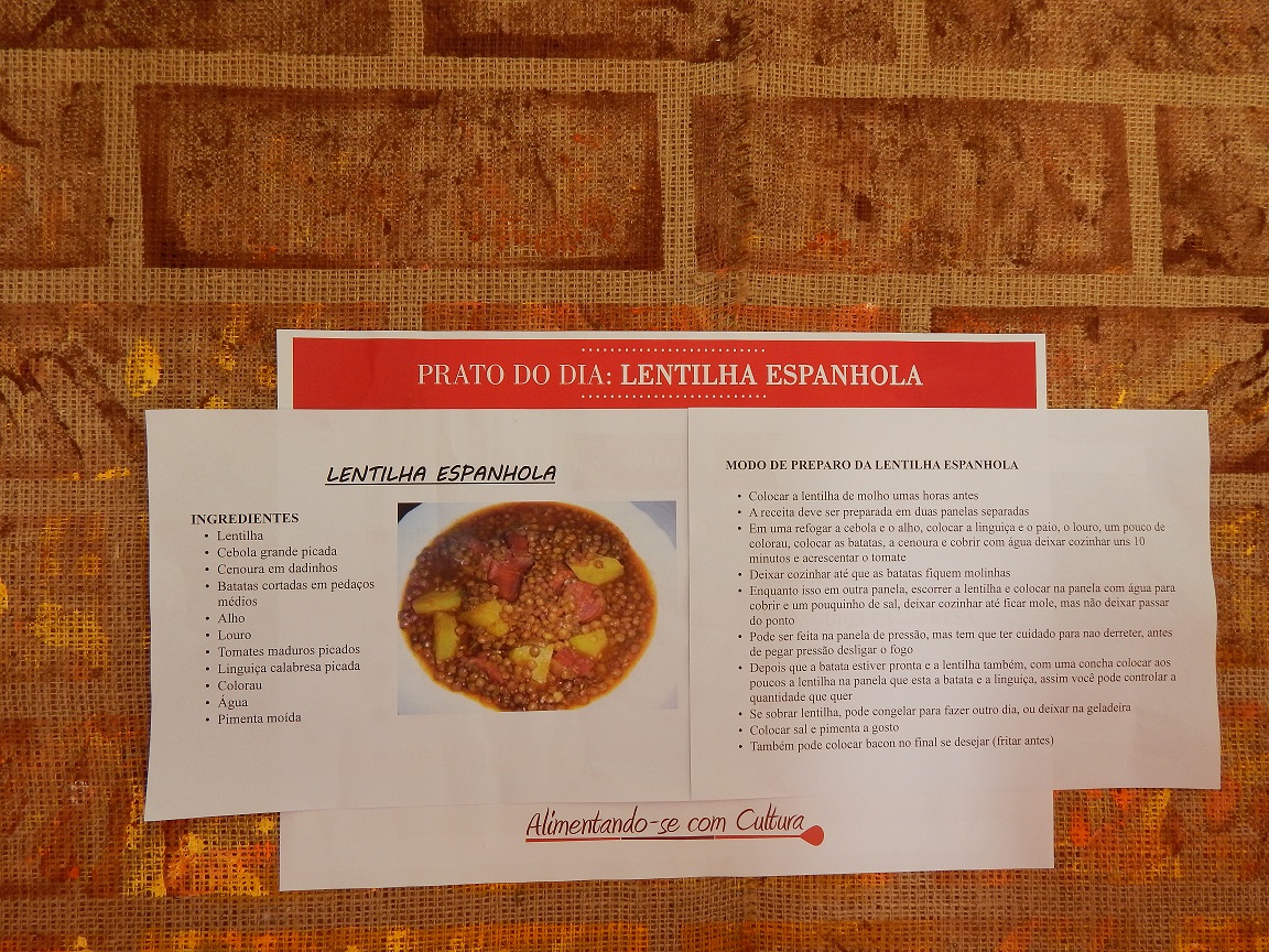 No dia 24 de maio, última terça-feira, ocorreu a 2ª edição do Projeto “Alimentando-se com Cultura”. A atividade que tem por finalidade proporcionar aos estudantes que fazem refeições no restaurante universitário, um contato com as culturas influentes de São Borja através da Gastronomia, apresentou como tema na 2ª edição a "Cultura Espanhola". Os alunos foram recepcionados para o almoço em um ambiente agradável e decorado e com apresentações audiovisuais de danças típicas espanholas. O prato do dia ficou por conta da "Lentilha Espanhola", e os estudantes puderam conhecer e saborear um pouco da gastronomia castelhana.