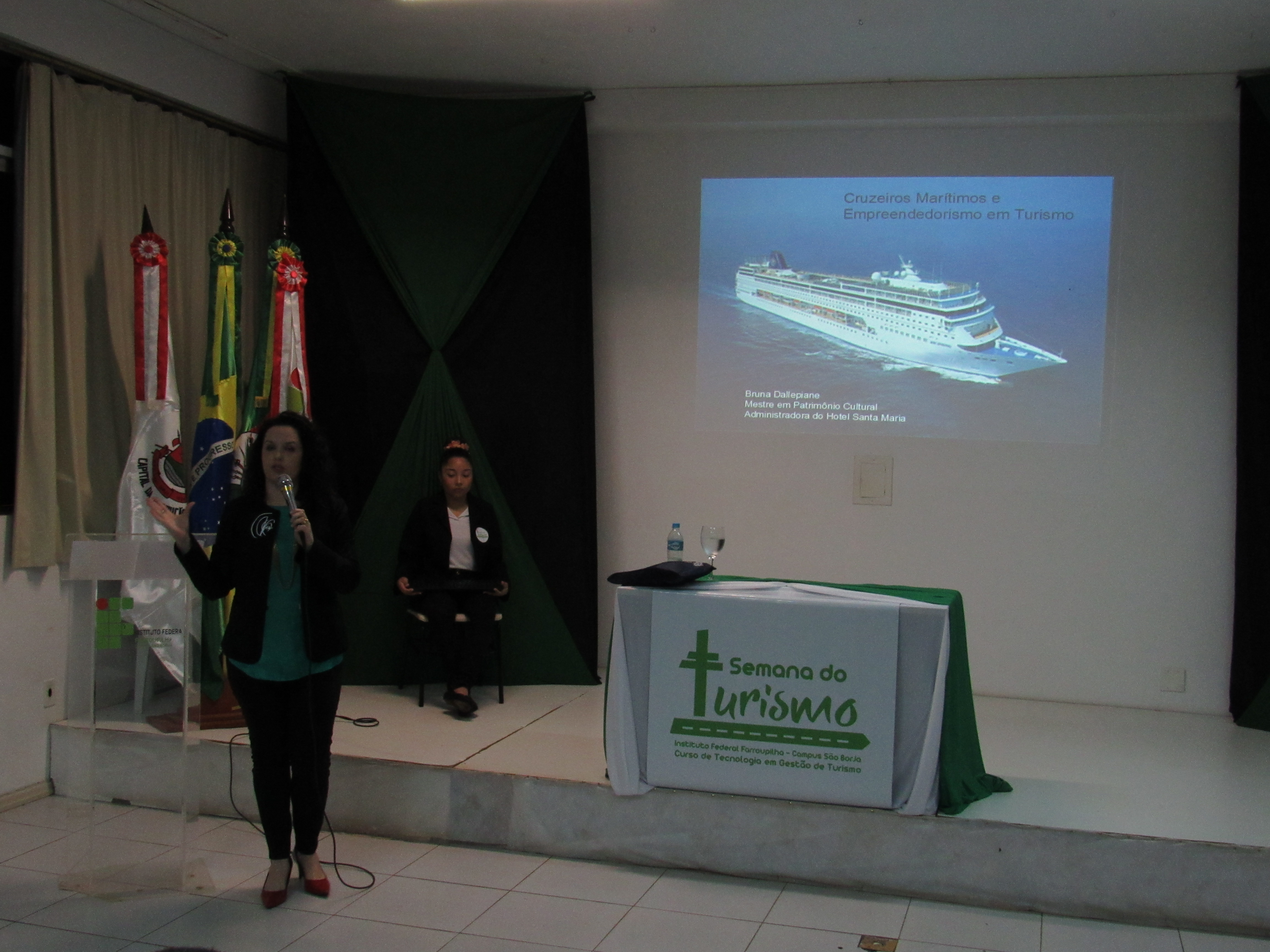 A última noite da semana acadêmica contou com a presença da turismóloga Vânia Antunes, apresentando informações de seu empreendimento, abordando as operações turísticas internacionais e o mercado turístico do sul do Brasil. Na sequência, o professor Fernando Rodrigues tratou sobre o tema dos resquícios Jesuítico-missioneiros da redução de São Borja, expondo questões de altares particulares, identidade e patrimônio cultural.
