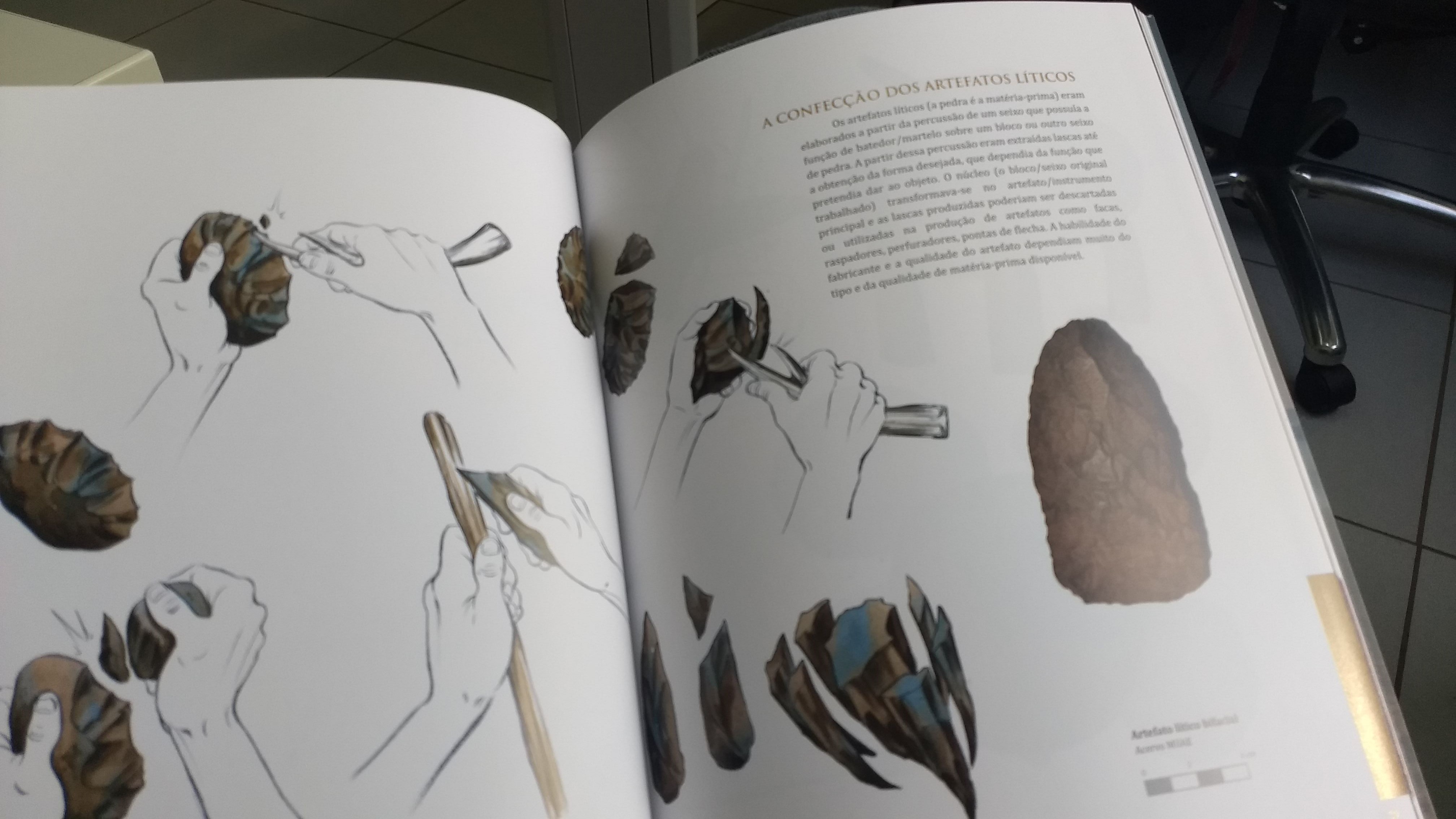 Ilustração de ferramentas e utensílios pré-históricos encontrados no RS