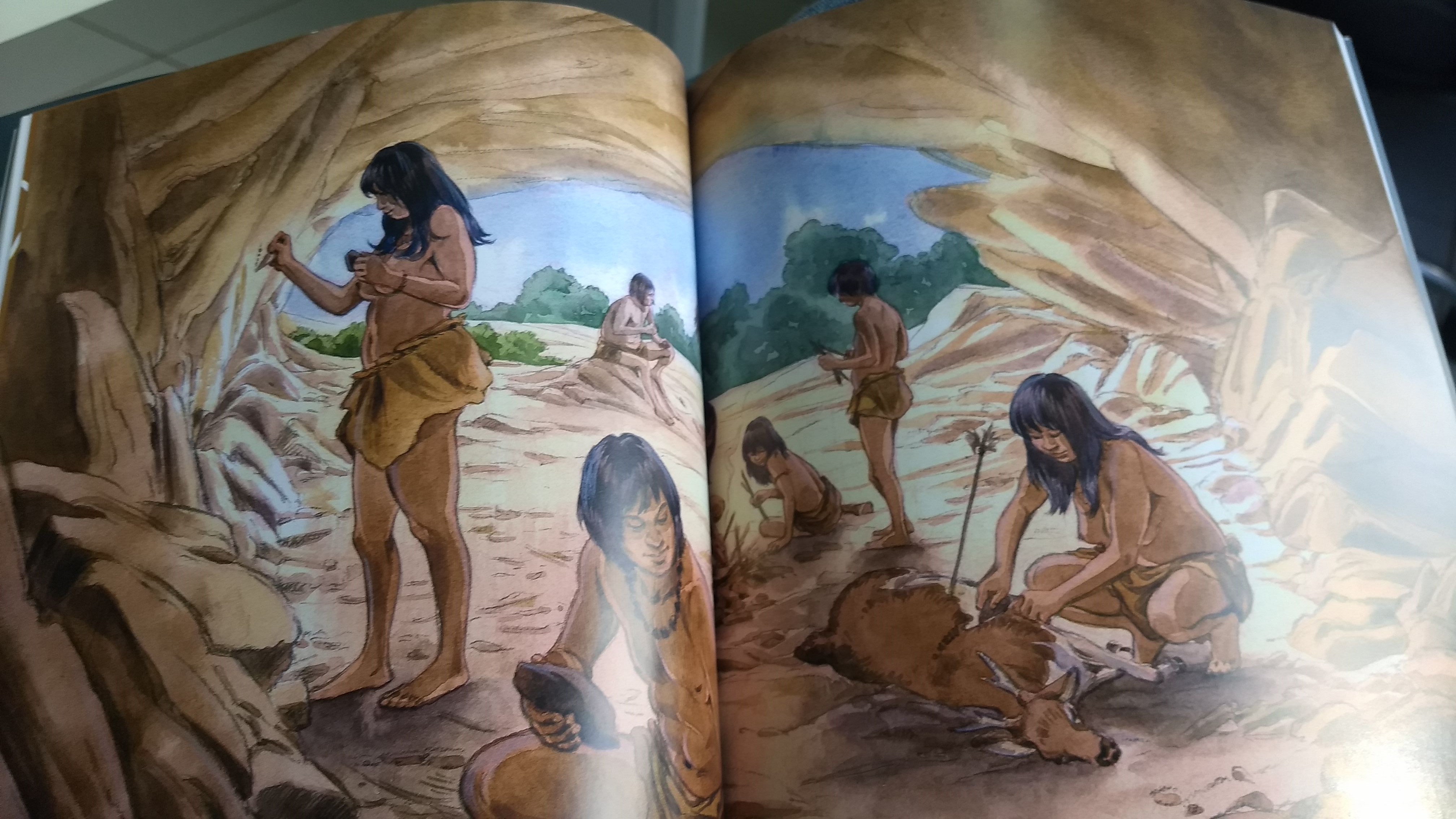 Ilustração de habitantes pré-históricos do RS
