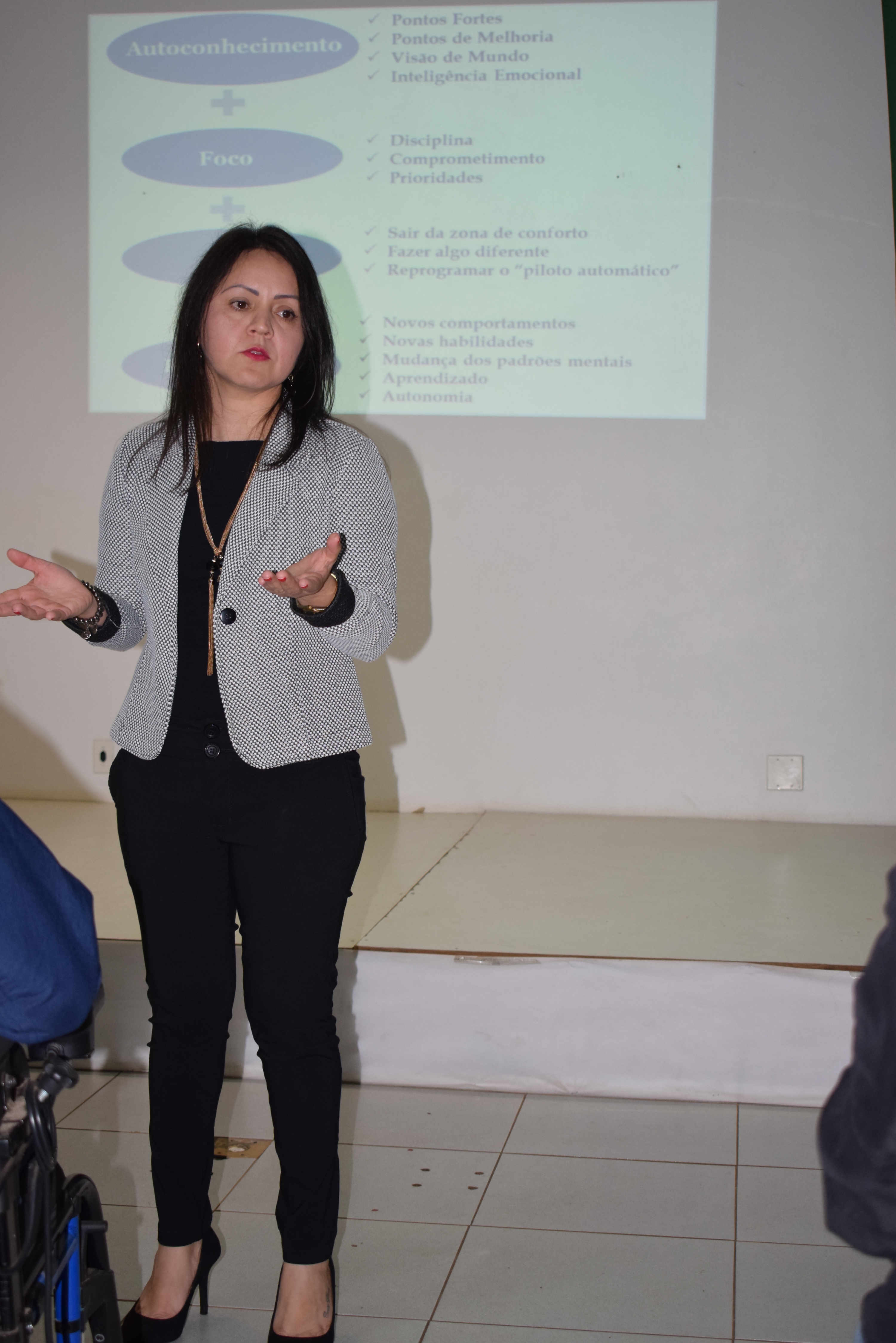 Adriana Ferreira também abordou sobre autoconhecimento, foco e ação, sendo que a soma dos três elementos são os resultados. Para se obter resultado, cada um deve identificar suas habilidades e seus pontos fortes, ter disciplina, comprometimento e prioridades, além de sair da zona de conforto e fazer algo diferente.