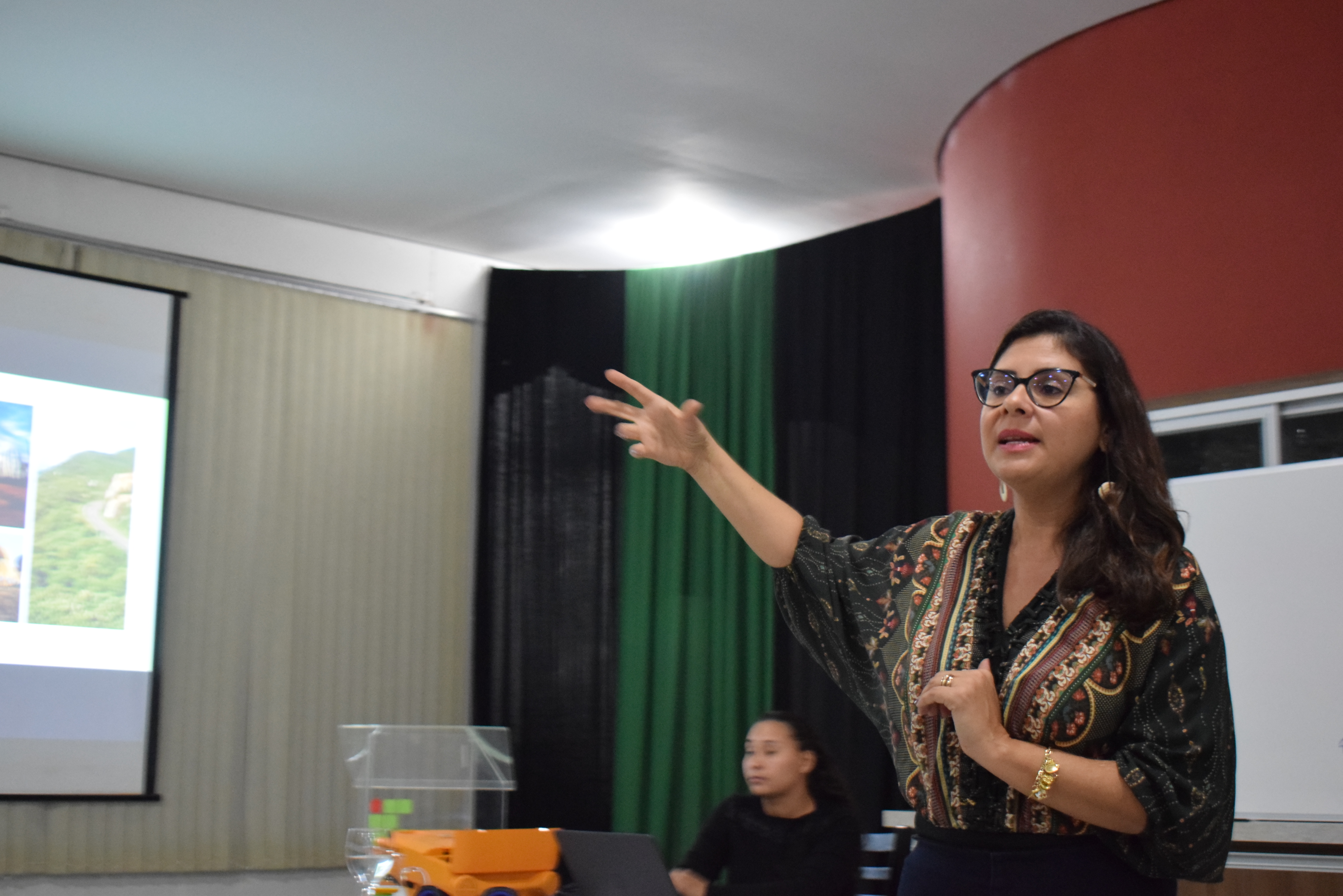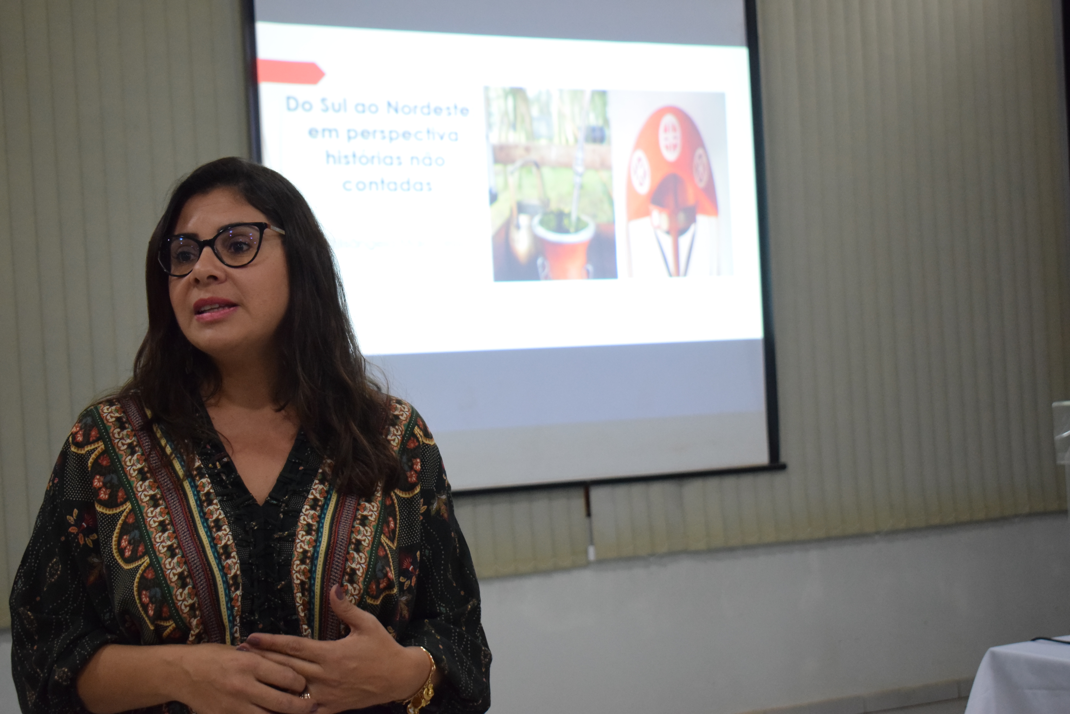 Na quarta-feira à noite, conversou com os acadêmicos a Professora da Universidade Federal do Pampa (Unipampa), Elisângela Maia Pessoa, sobre as “Histórias não contadas do Sul ao Nordeste”. A Professora que fez seu Pós-doutorado na Paraíba, na região Nordeste do país, trouxe os relatos das experiências que viveu por lá durante a sua trajetória acadêmica.