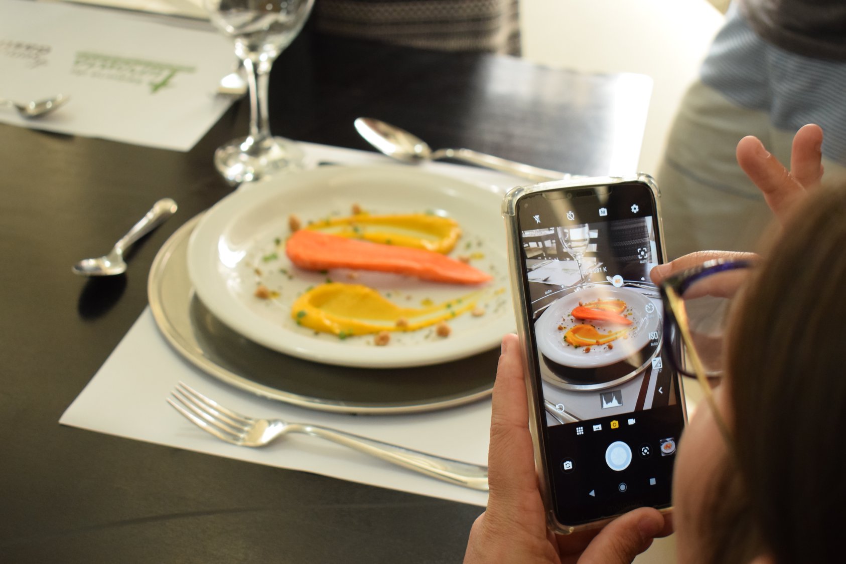 E para encerrar com sucesso, a sexta-feira iniciou com a Oficina de Fotografia, ministrada pela Professora Denise Silva, da Unipampa - Campus São Borja. Denise, que é Doutora e Mestre em Ciências da Comunicação, atualmente coordena o Núcleo de Estudos e Produção em Fotografia da Unipampa. A professora teve a cooperação da sua orientanda, Maria de Ré, acadêmica do 8ª semestre do Curso de Publicidade e Propagada da Unipampa, que apresentou o tema “Mobgrafia – retratando o food styling”. Maria apresentou aos participantes algumas técnicas valiosas para a fotografia de alimentos com smartphones.