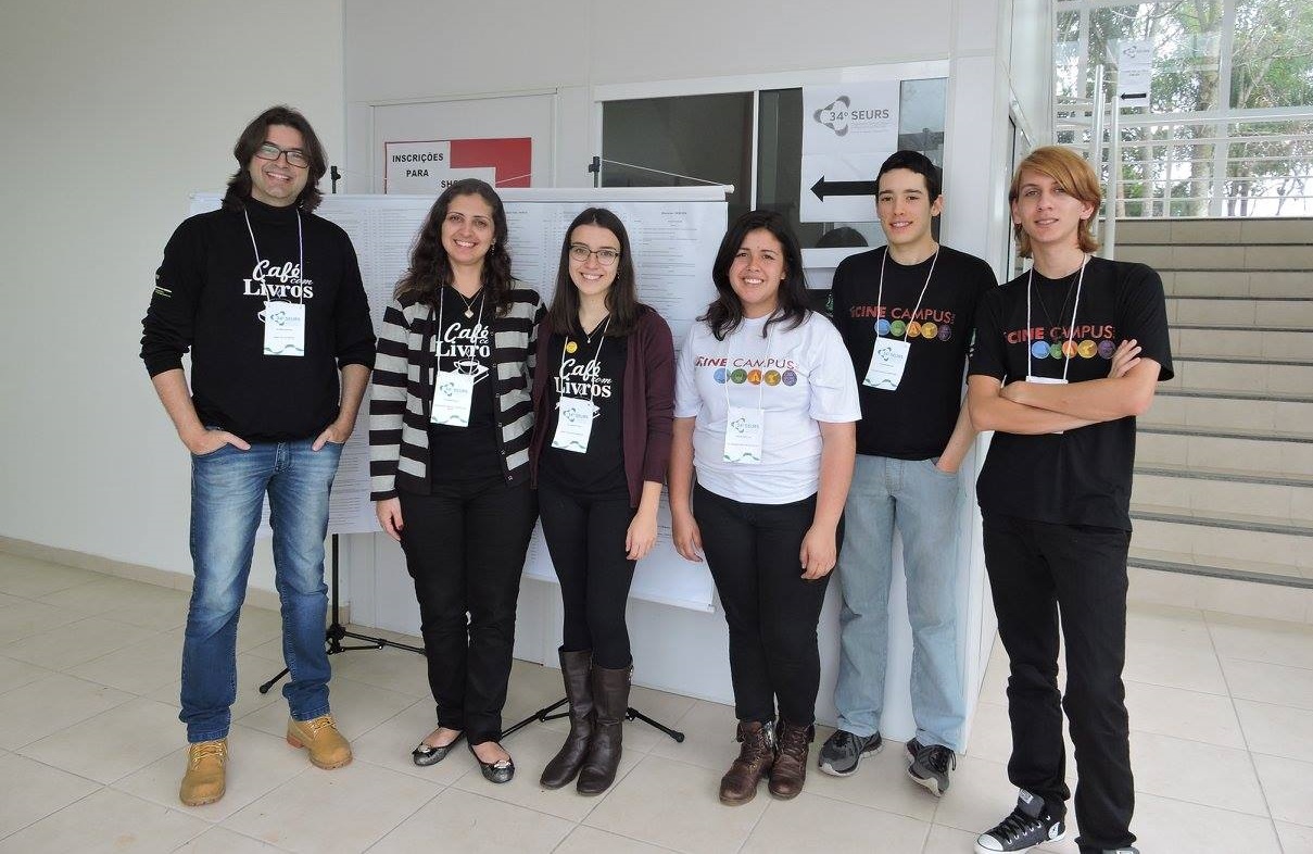 Foto: Professores e Bolsitas dos Projetos de Extensão Café com Livros e Cine Campus no 34º SEURS.