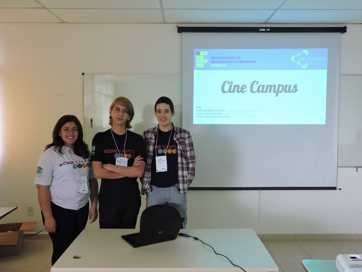 Coordenadores e alunos bolsistas dos projetos de extensão Café com Livros e Cine Campus foram expor e apresentar os projetos no 34°SEURS –Seminário de Extensão Universitária da Região Sul, em Camboriú – SC, entre os dias 03 a 05 de agosto, no Instituto Federal Catarinense.