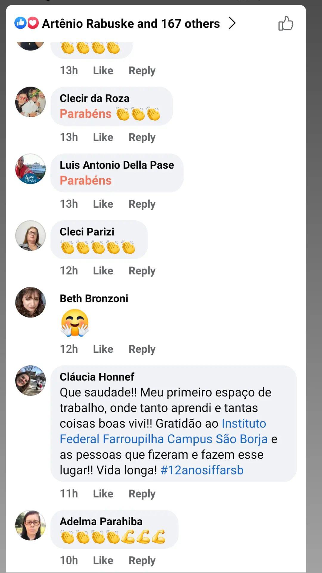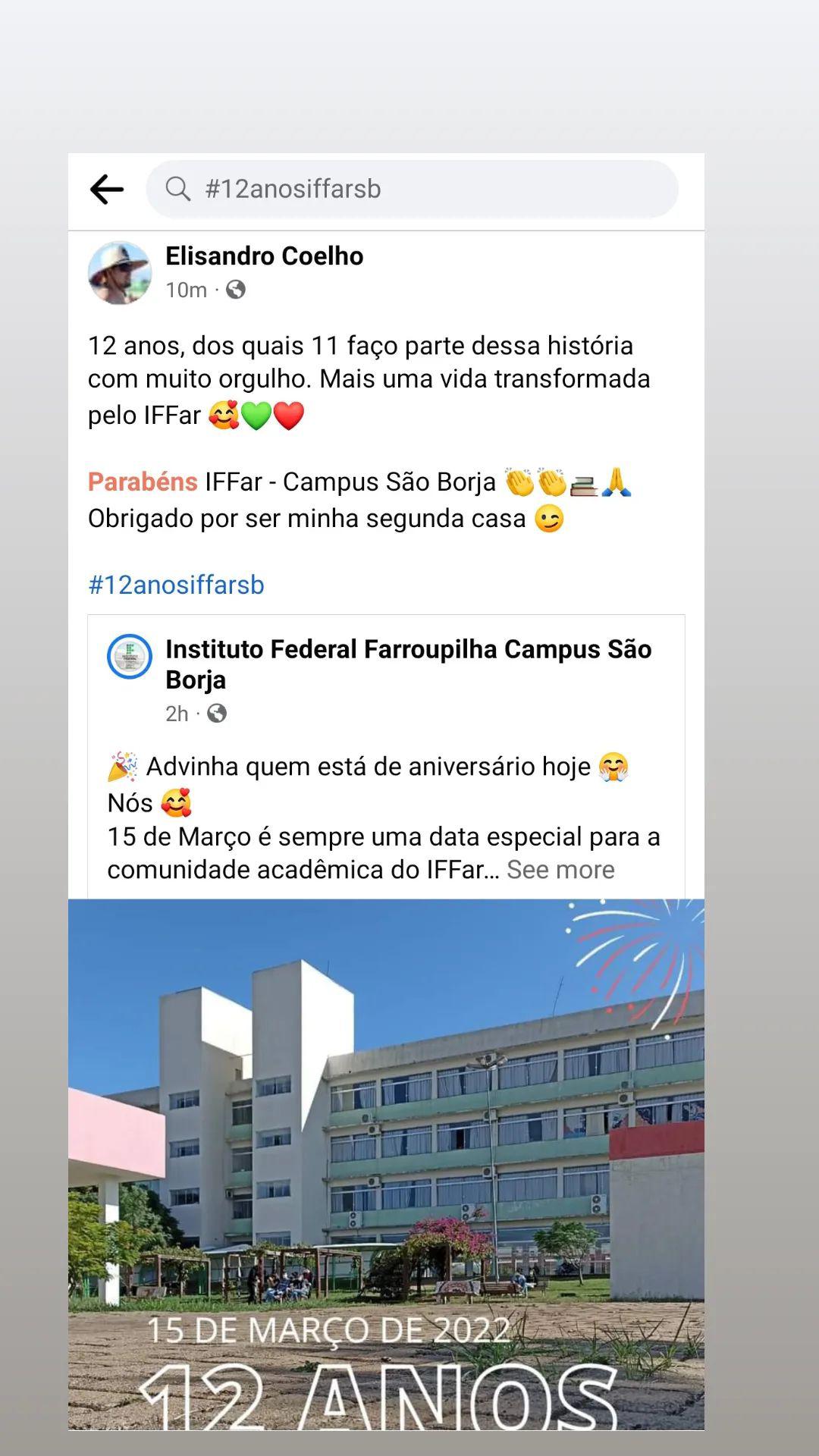 A hashtag #12anosiffarsb reúne no Instagram e no Facebook algumas dessas mensagens.