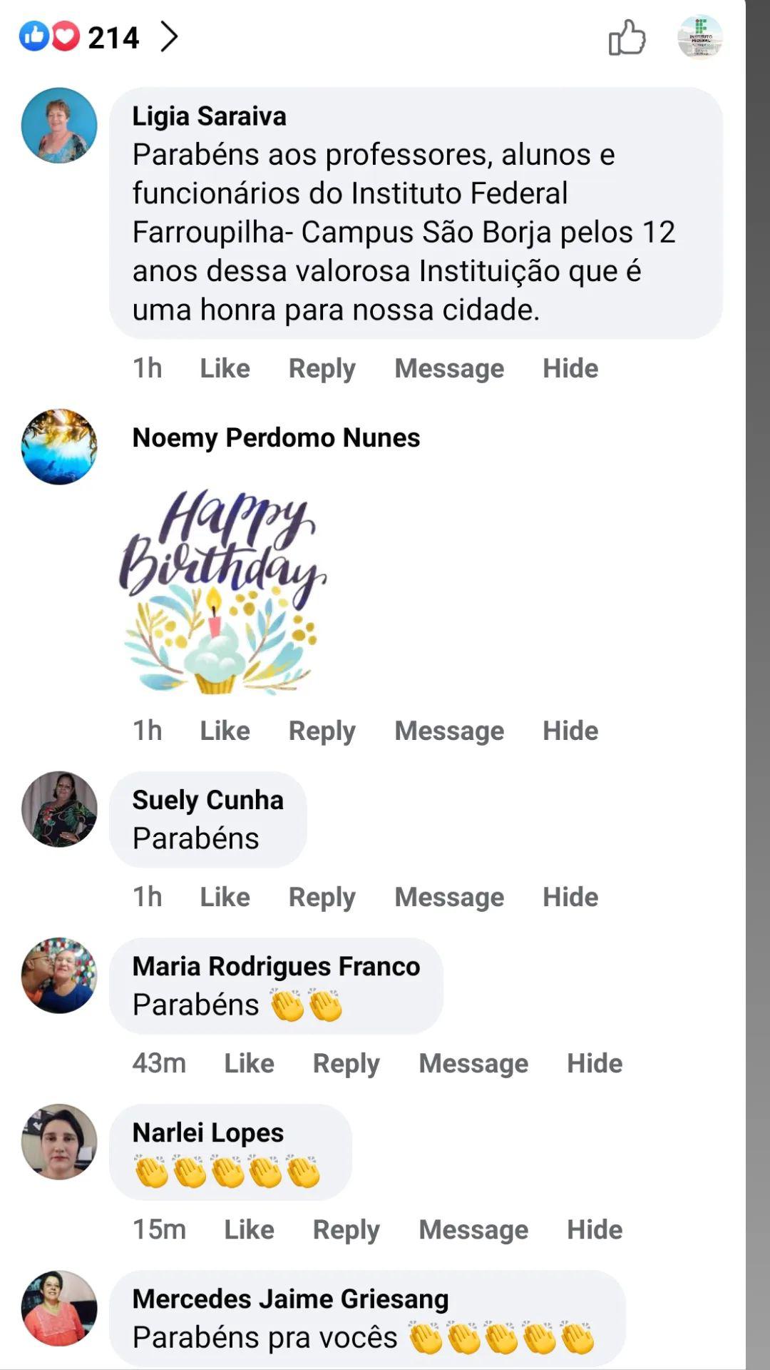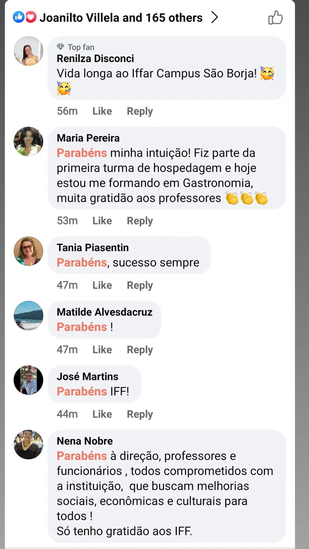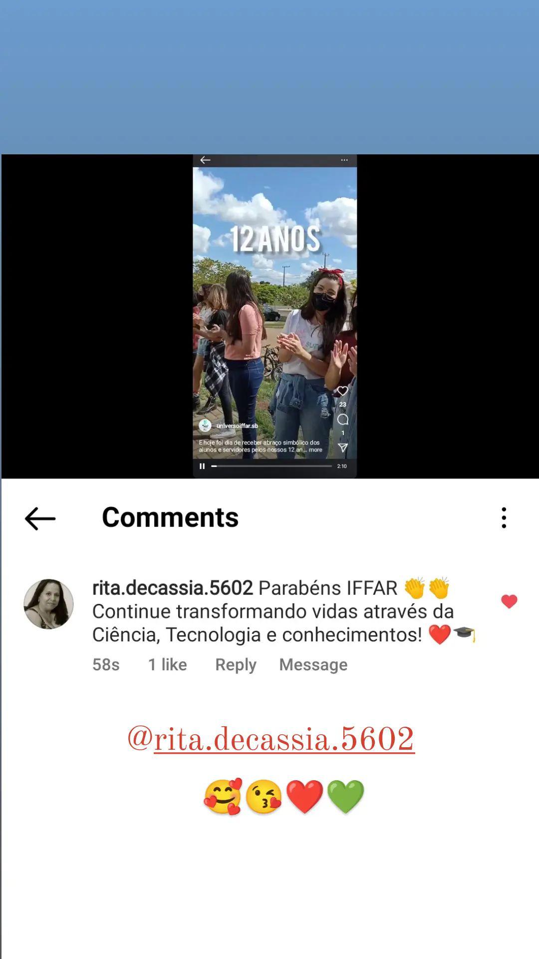 As felicitações e depoimentos foram repostados nos stories do Facebook e Instagram do IFFar, como uma maneira de valorizar a data e também de mostrar à comunidade a importância da instituição no município retratada pelos seus próprios moradores.