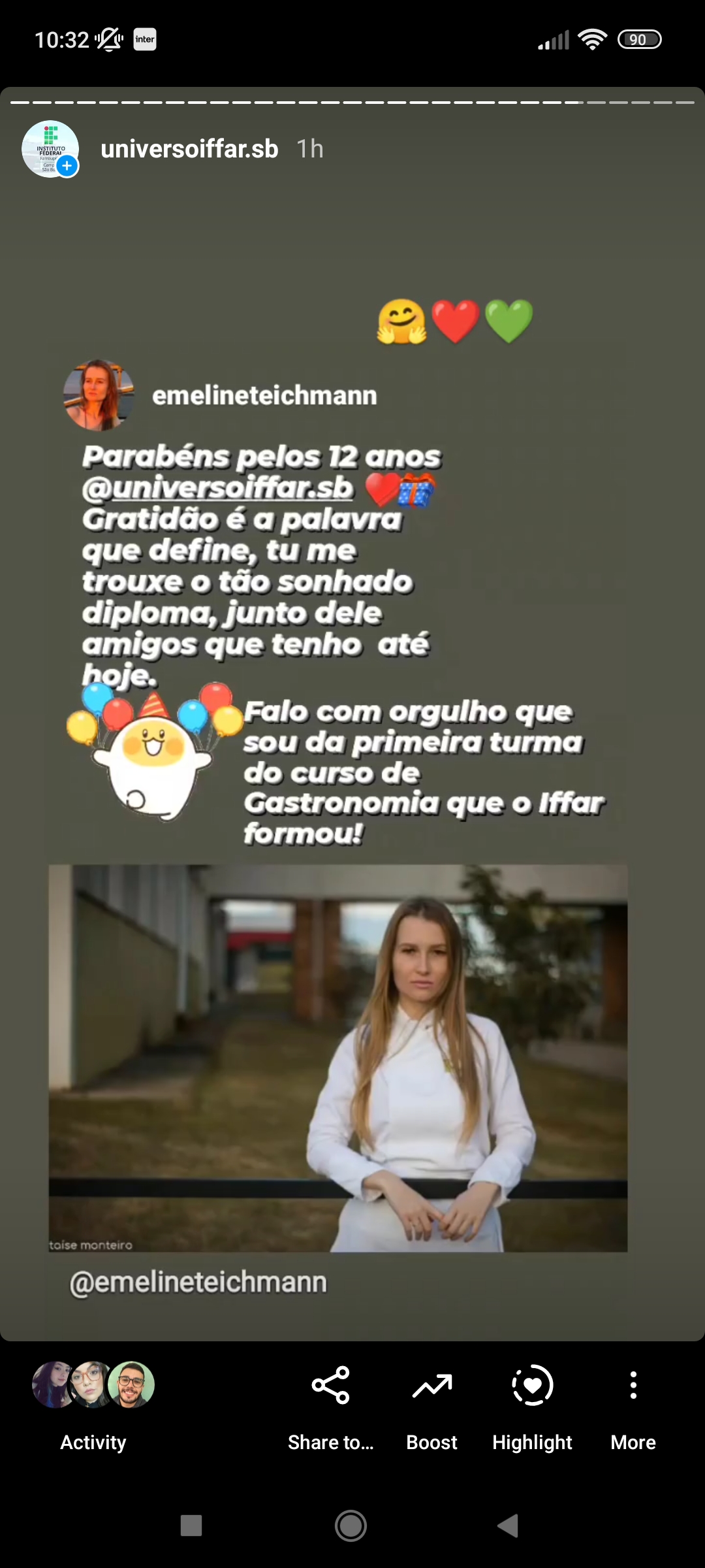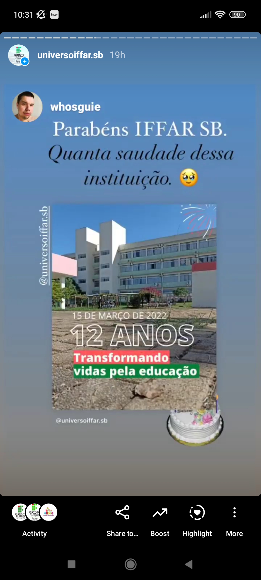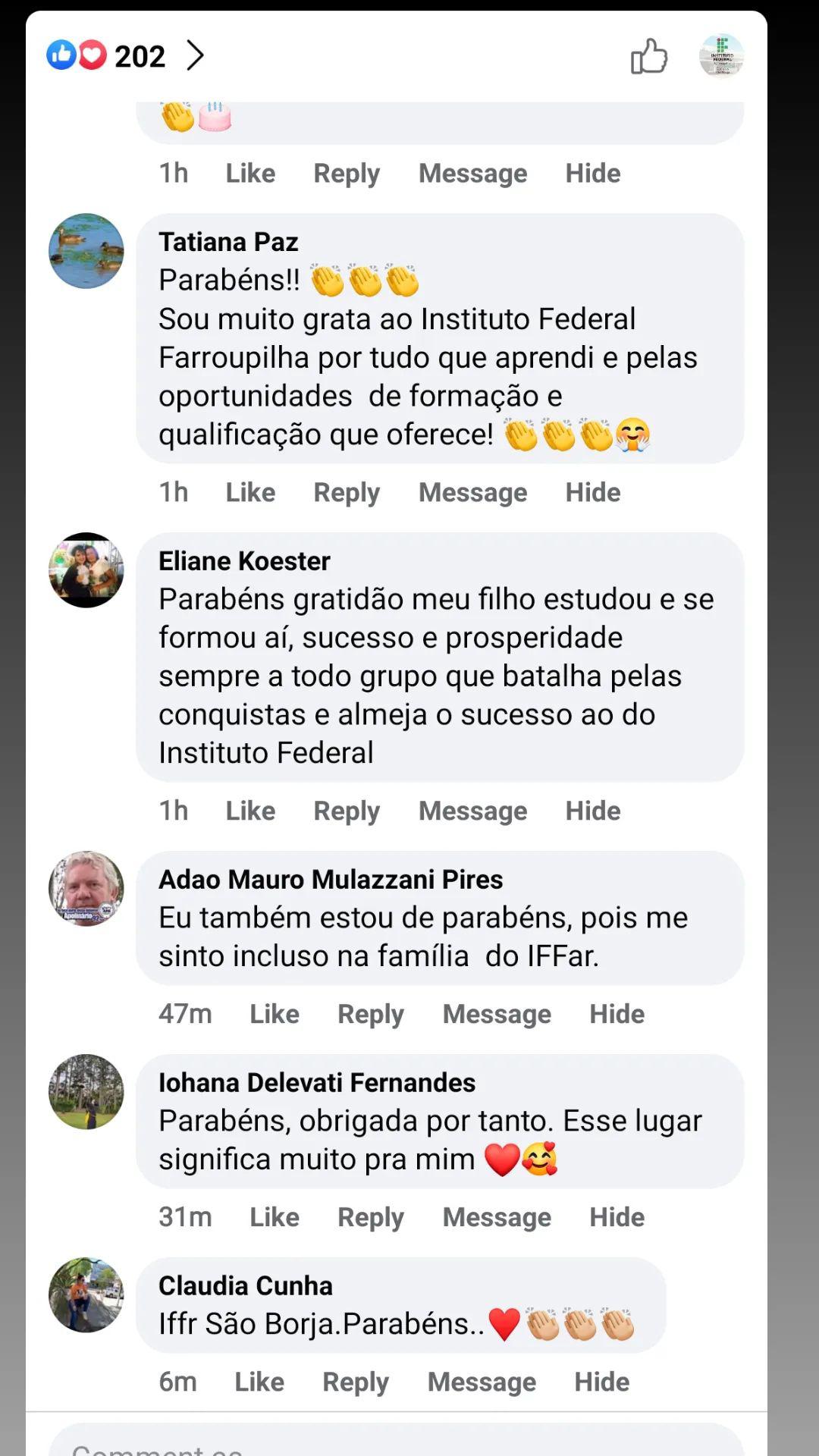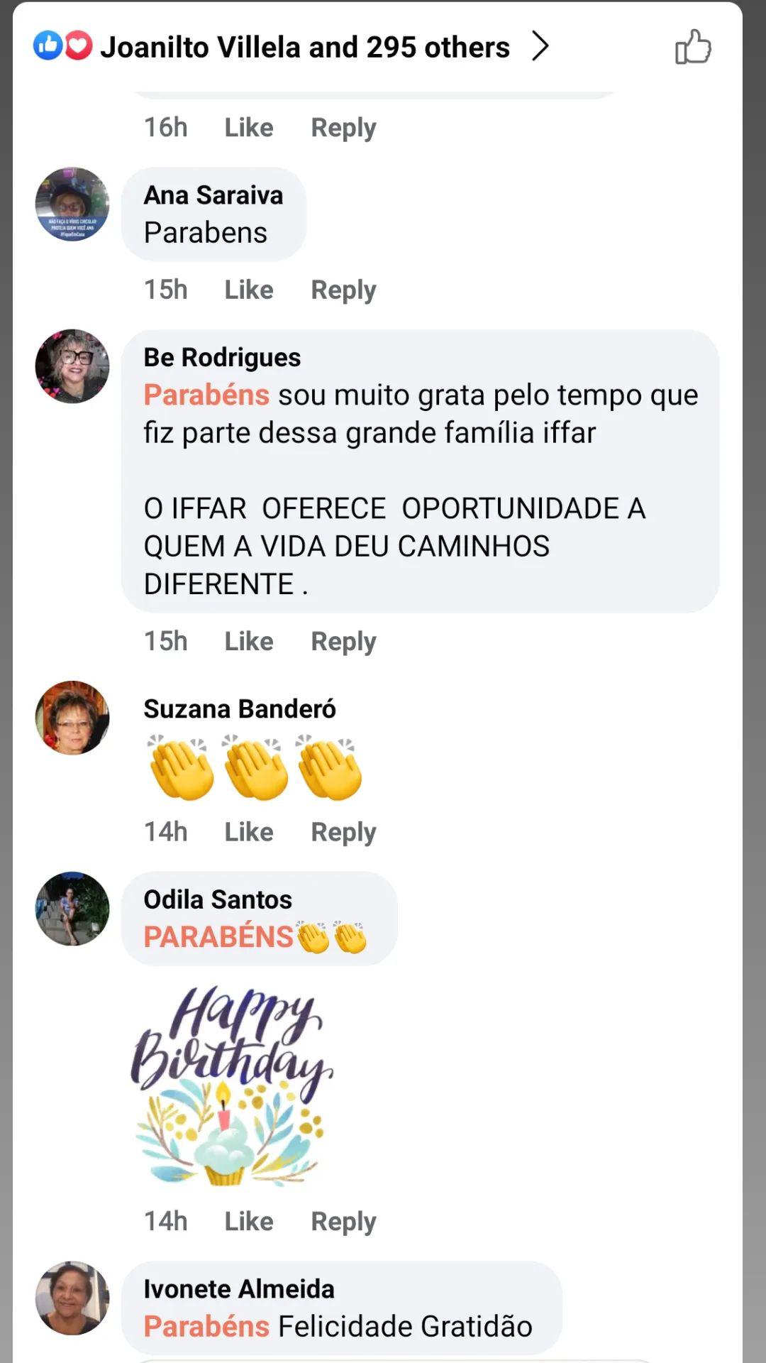 As felicitações e depoimentos foram repostados nos stories do Facebook e Instagram do IFFar, como uma maneira de valorizar a data e também de mostrar à comunidade a importância da instituição no município retratada pelos seus próprios moradores.
