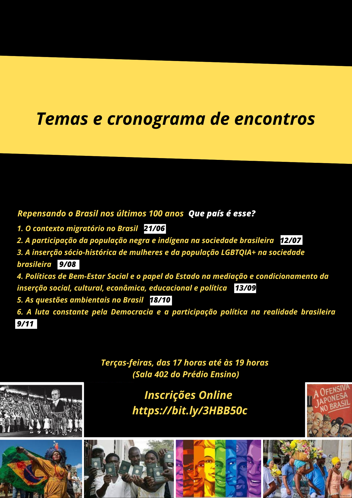 O projeto de extensão “Que país é esse? Repensando o Brasil nos últimos 100 anos, inicia nesta terça-feira (21), propondo a discussão do contexto migratório no Brasil.
