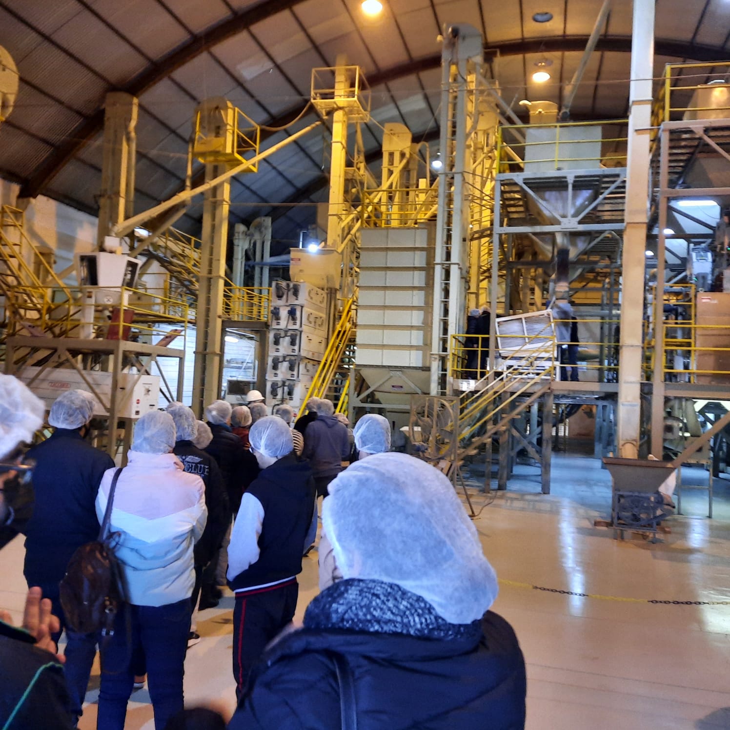 Cerca de 50 alunos puderam conhecer uma das maiores empresas do setor orizícola da Fronteira Oeste do Rio Grande do Sul e ver na prática o processo de beneficiamento do arroz.