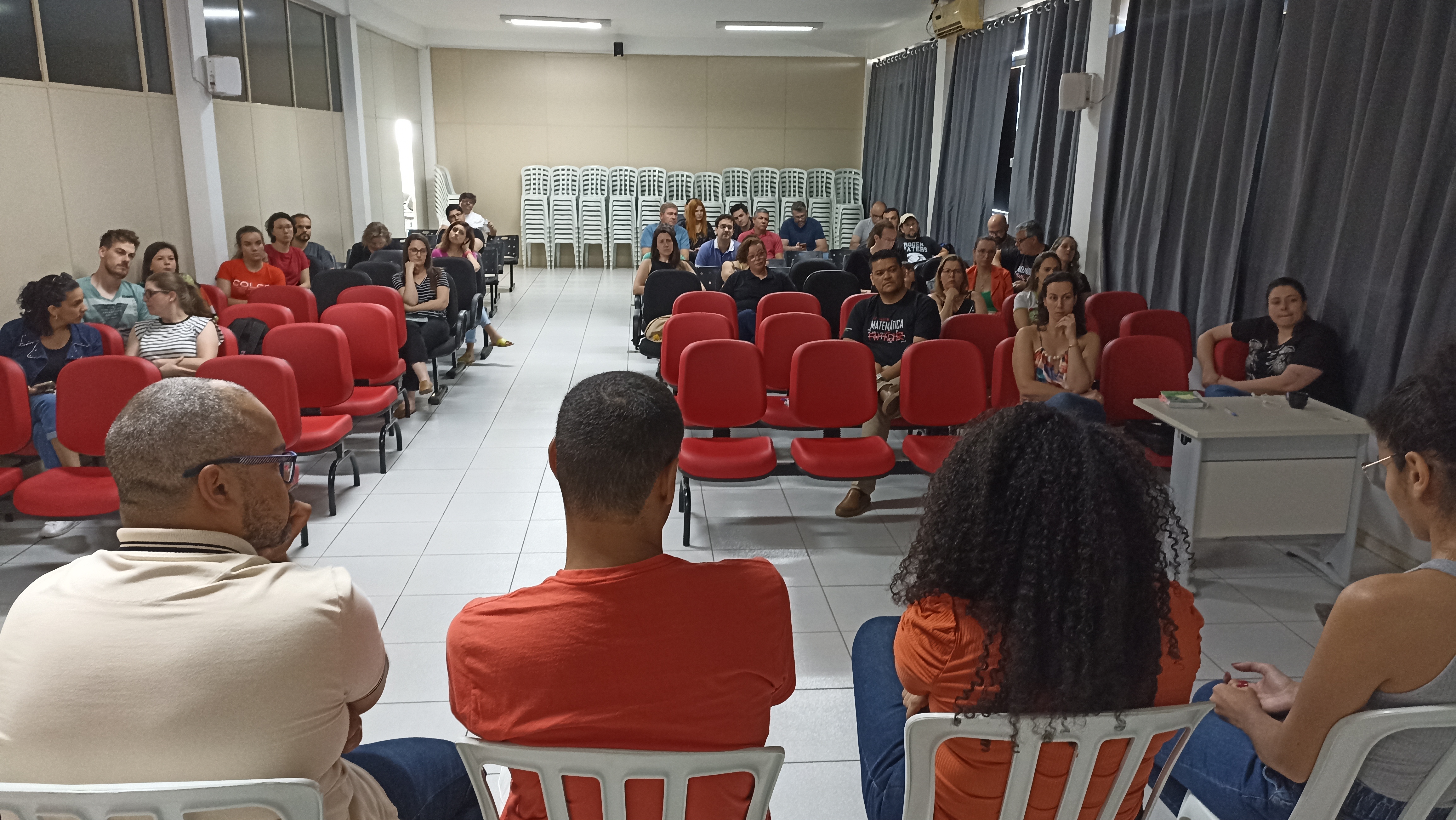 No período da tarde, foi a vez dos servidores participarem do segundo Diálogos pretagógicos “Educação, docência e negritude: onde estão os quadros-negros?”, com docentes do IFFar. A atividade ocorreu na sala 402, sendo disponibilizado o momento de reunião geral dos servidores.