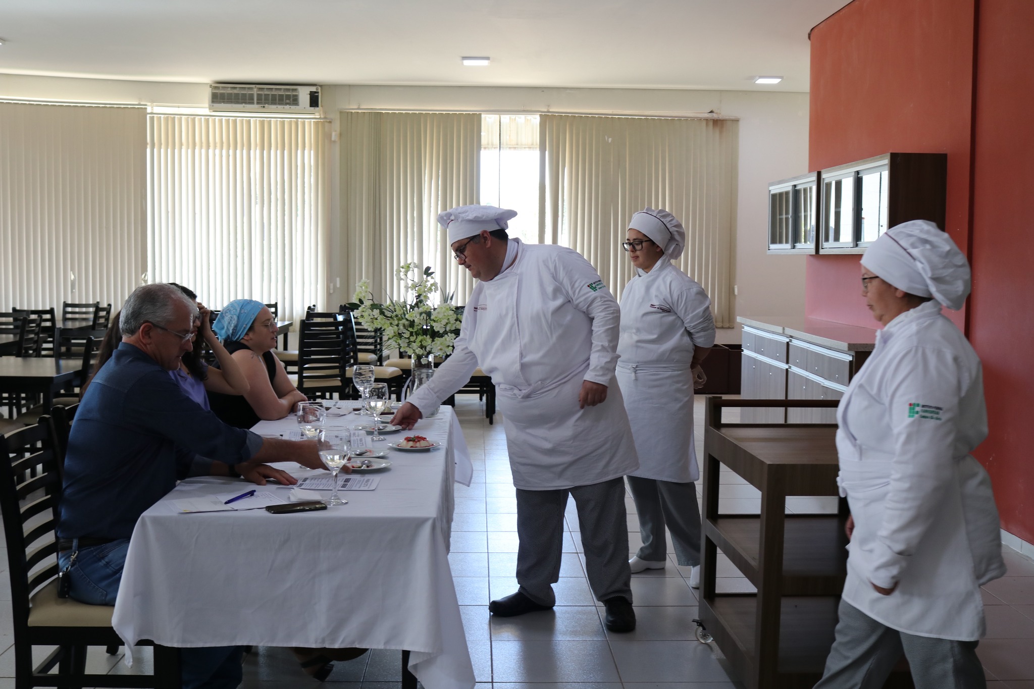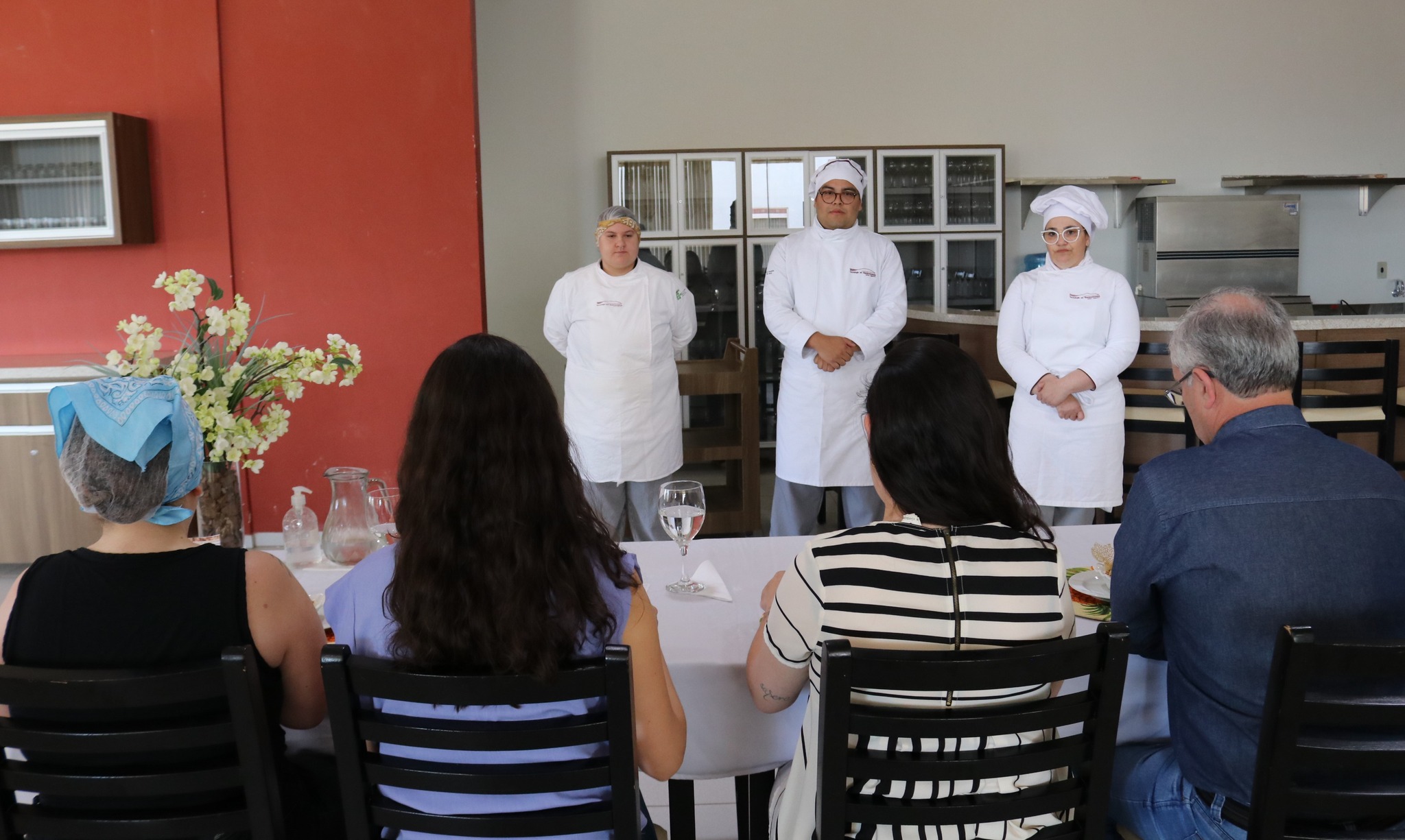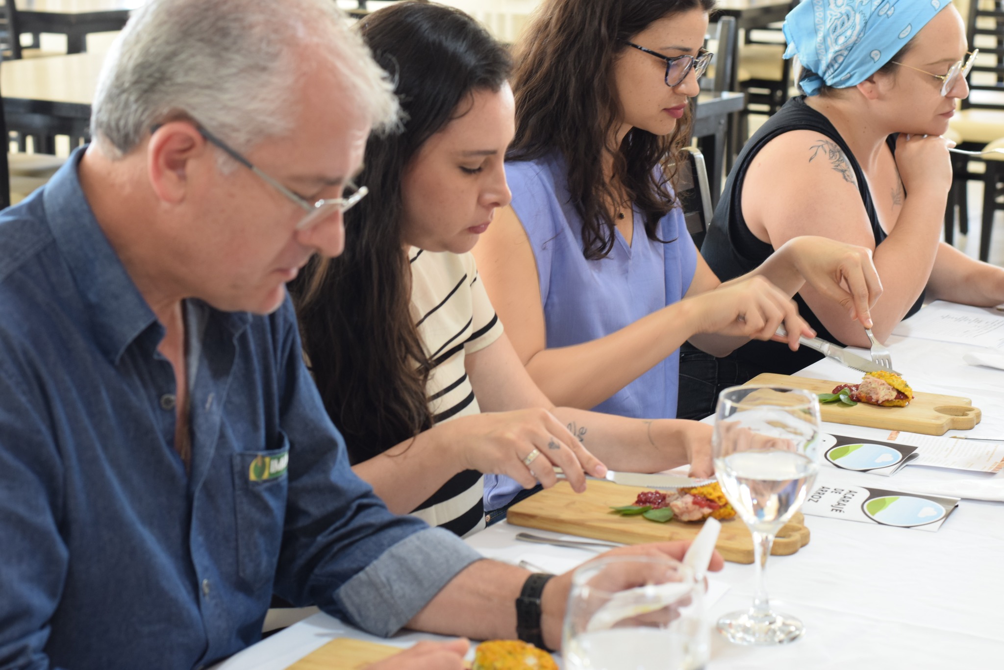 Foto: Banca avaliadora prova receita criada pelos alunos tendo o arroz como matéria-prima principal/ Ascom