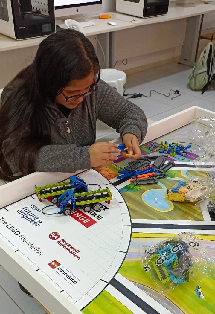 Foto: Alunas do IFFar participantes do projeto “EstroGênias”, meninas na ciência, desenvolvido em parceria com a empresa POSITIVO Tecnologia, trabalham em projeto de robótica no Lab Maker.