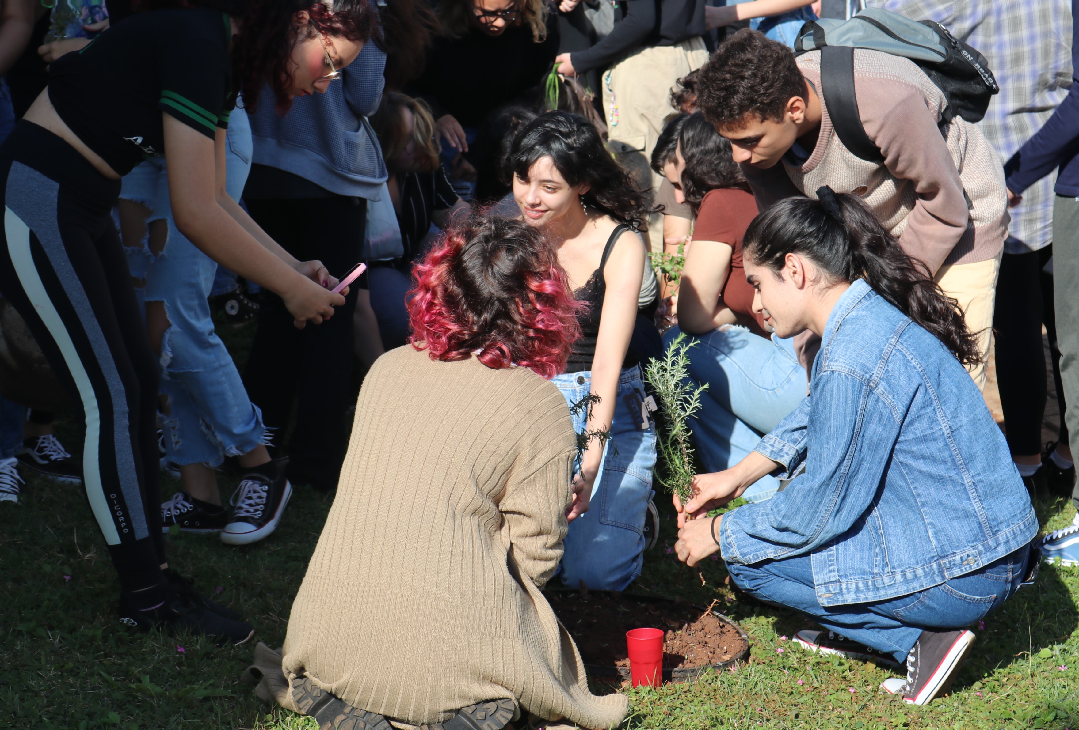 Foto: Alunos e servidores se mobilizam para o plantio de mudas no campus /Ascom