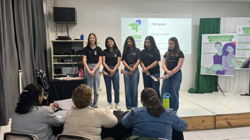 Isadora apresentou a PPI intitulada “Estações do Saber”, ao lado das colegas Isabella dos Santos Carvalho, Isabelle da Silva Soares, Lohana Gauna e Nathalia Vieira da Silva Magalhães, sob orientação da professora Aline Vicente Kunst.