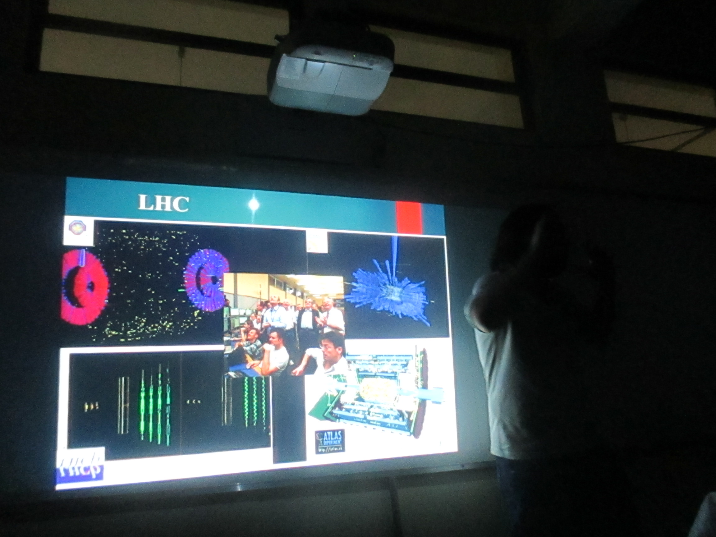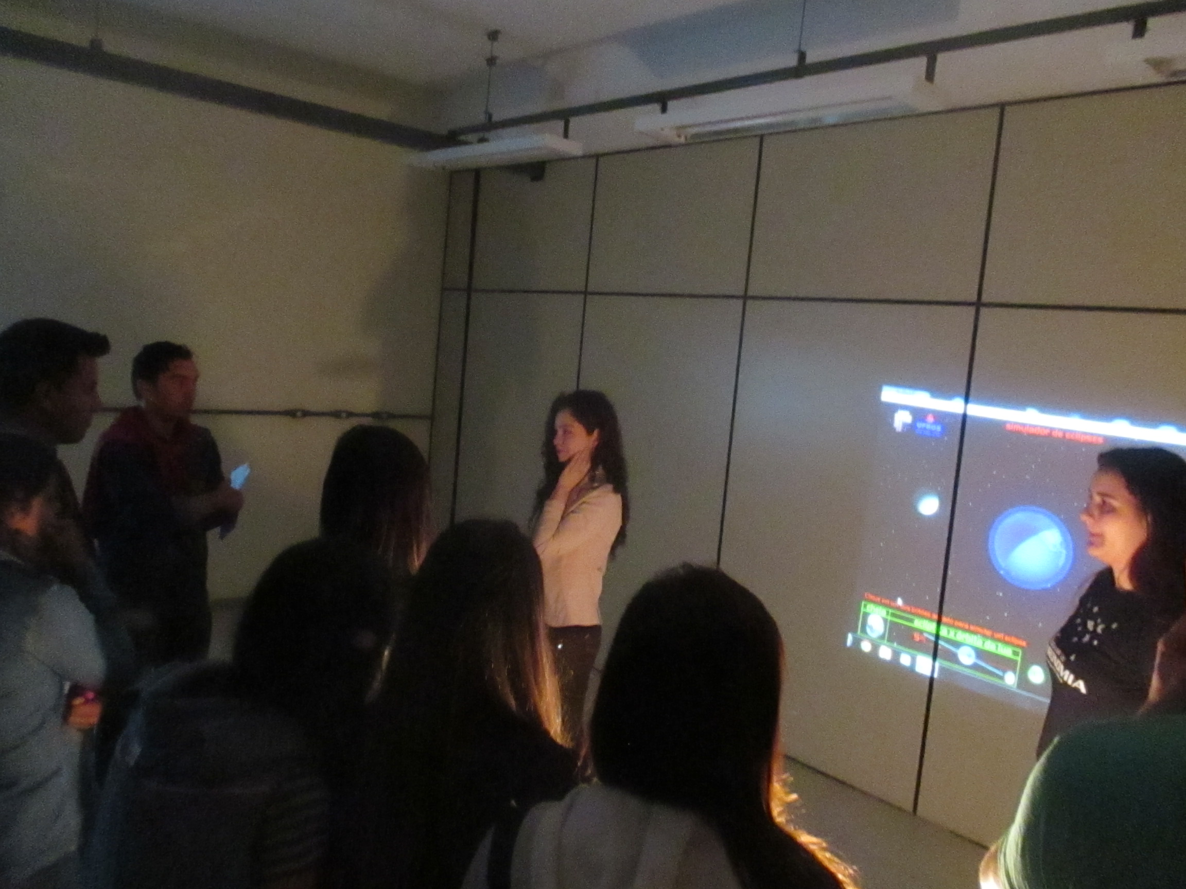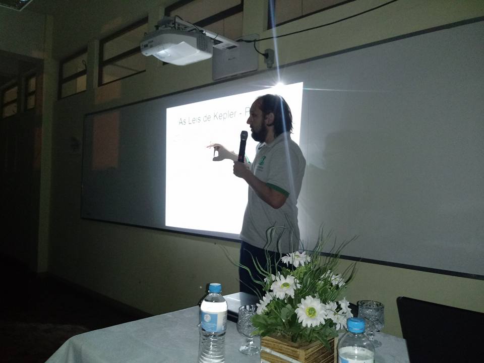 A participação começou com uma fala da professora Bianca, contando sobre a história da Astronomia, destacando os primeiros cientistas que se preocuparam em olhar o céu e descrever, cientificamente, o que estava ocorrendo. Na sequência, o professor Mairon demonstrou aos participantes as três Leis de Kepler, as quais regem o movimento dos planetas em torno do Sol. Em uma segunda etapa, o professor Mairon apresentou aos participantes o Large Hadron Collider (LHC). Considerado o maior experimento do mundo, ele é responsável por estudar a estrutura da matéria, e seus resultados permitem compreender como o universo foi formado.