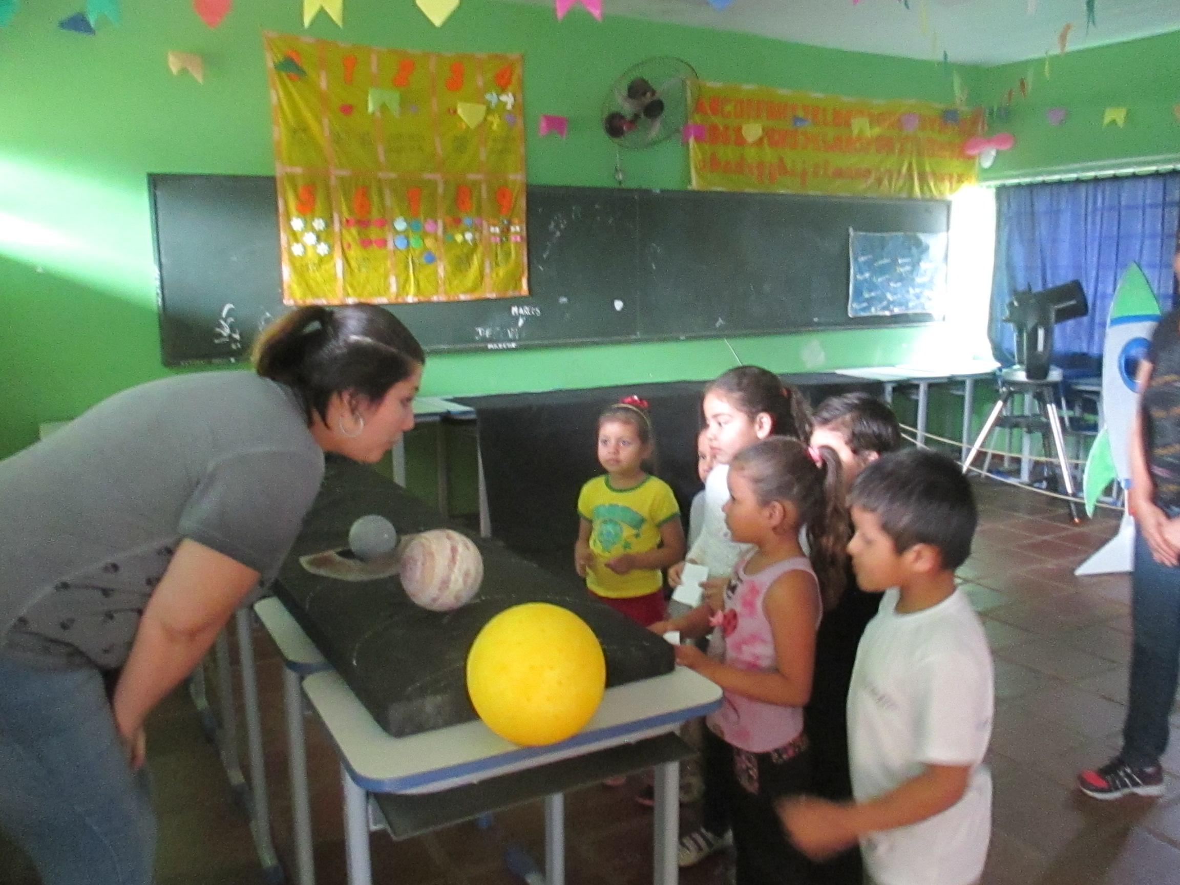 O projeto de extensão Astronomia na Escola participou da I Mostra Científica e Cultural da Escola Municipal Vicente Goulart, apresentando aos alunos, professores e comunidade uma sala temática sobre o Sistema Solar. A mostra realizada no final do mês de junho teve como tema “Construindo ideias sobre a sustentabilidade”.