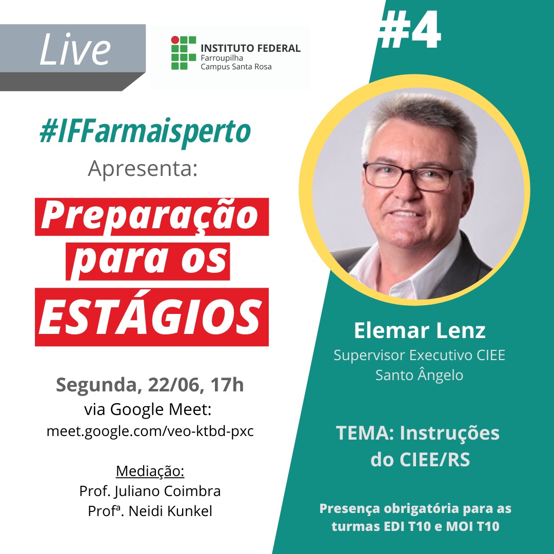 Seg. 22/06 - Preparação para os Estágios, com Elenar Lenz (CIEE/RS), via Meet (meet.google.com/veo-ktbd-pxc)