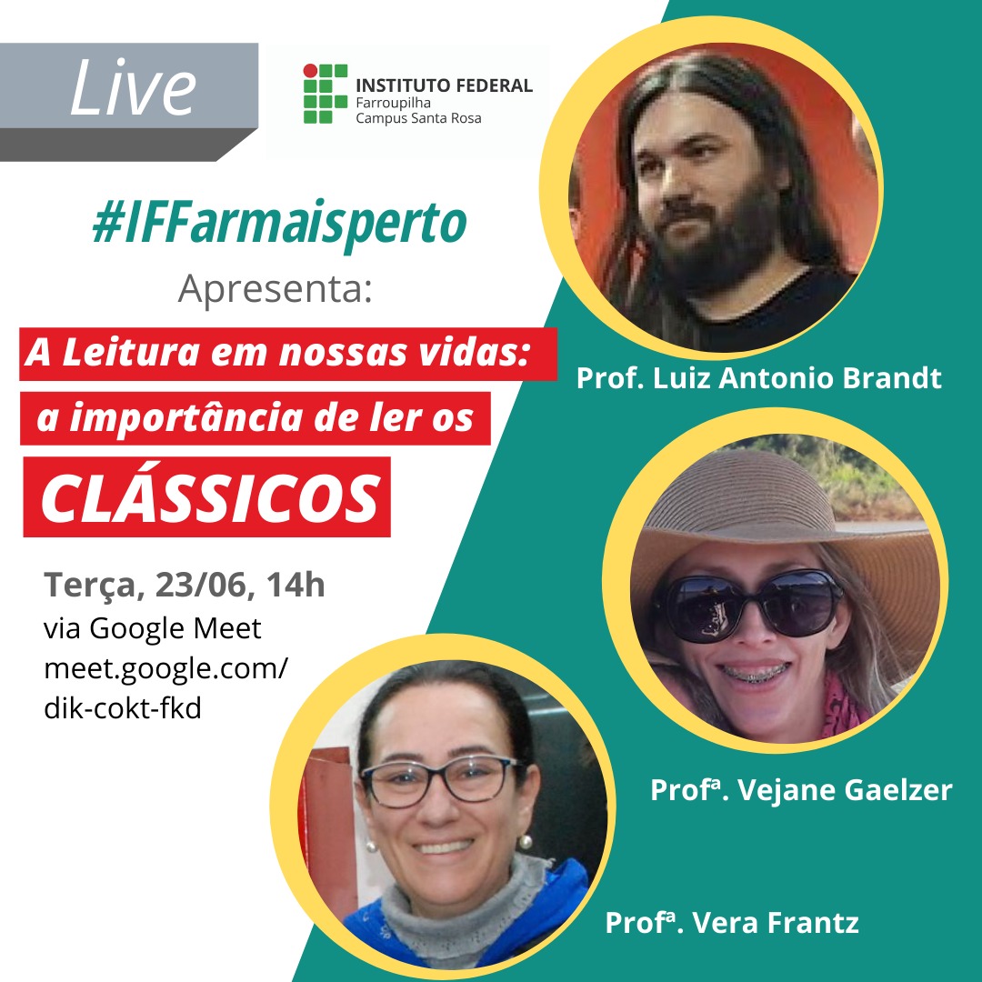 Ter. 23/06 - A leitura em nossas vidas: a importância de ler os clássicos. Com os professores Luiz Brandt, Vejane Gaelzer e Vera Frantz. Via Meet (meet.google.com/dik-cokt-fkd)
