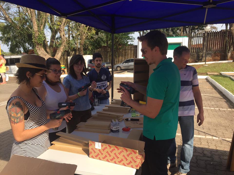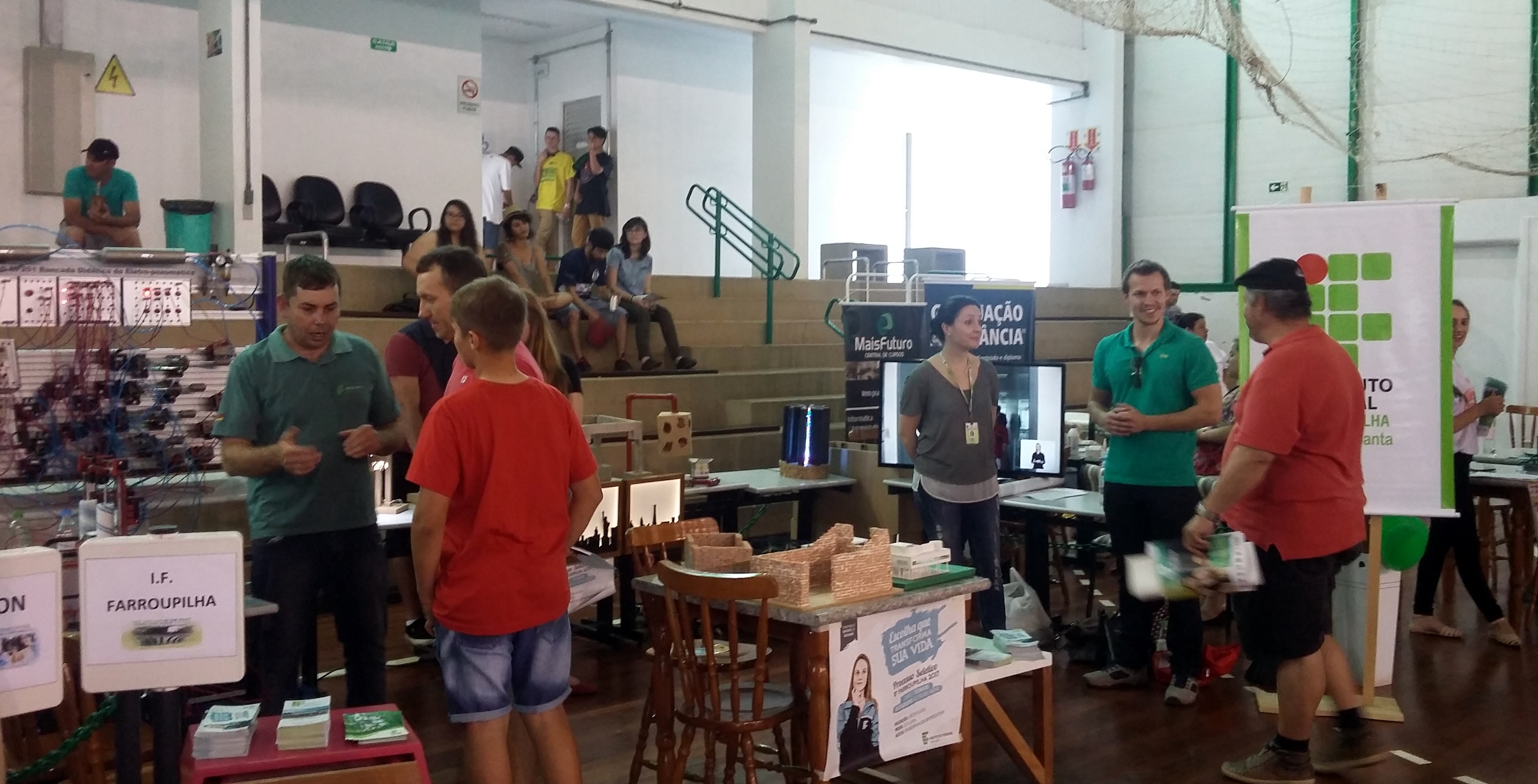 Servidores e alunos do Instituto fizeram a exposição de maquetes, luminárias, móveis e bancadas do curso de eletromecânica, distribuíram material informativo sobre os cursos e os processos seletivos. Na ocasião, o professor Lucas Tescke e o laboratorista do curso técnico em Móveis, Pedro Galina, ministraram minicursos de montagem de móveis aos visitantes.