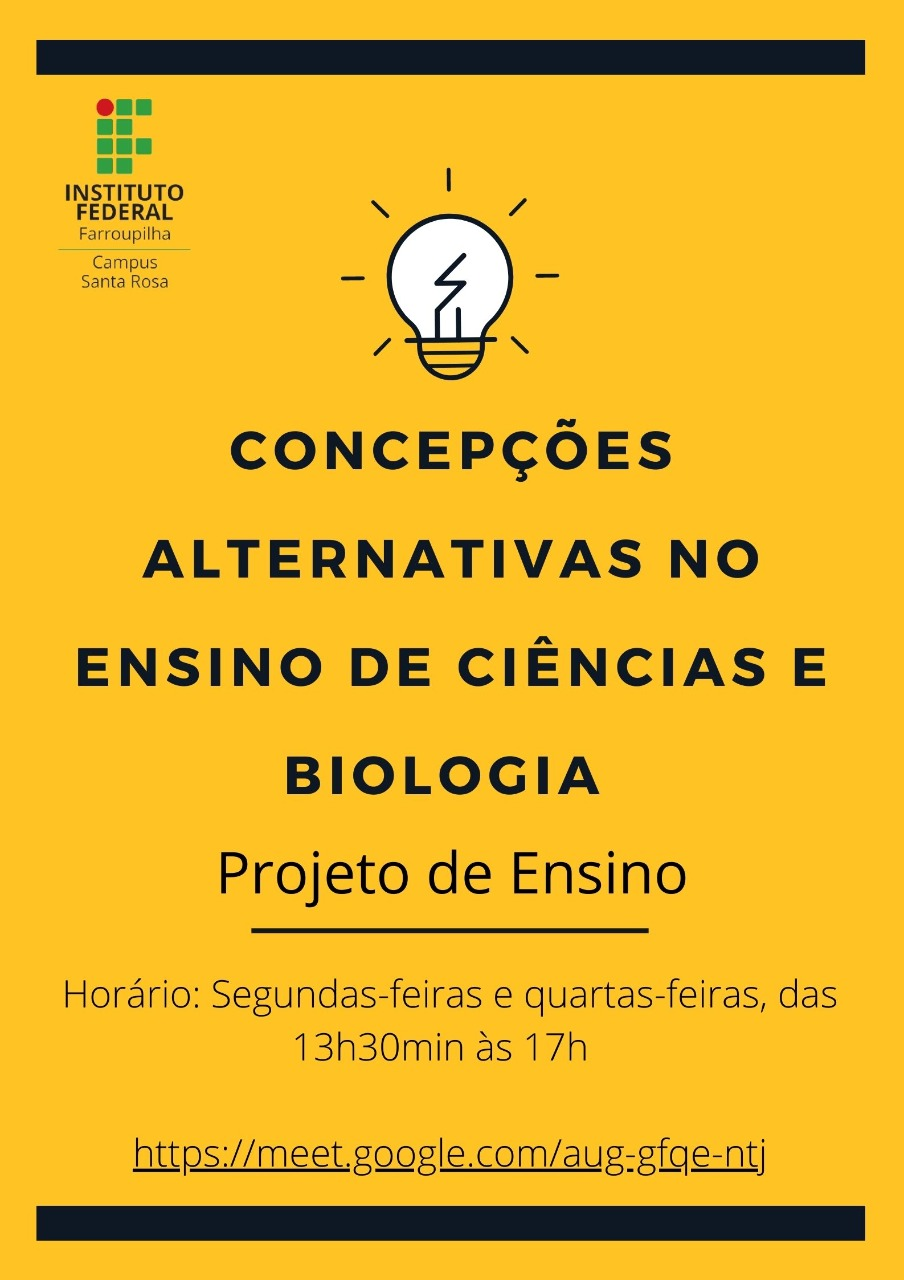 Concepções alternativas no ensino de Ciências e Biologia: Segundas e quartas, das 13h30 às 17h.