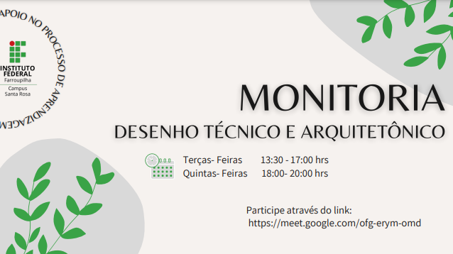 Desenho Técnico Arquitetônico: Terças, das 13h30 às 17, e quintas, 18h às 20h.