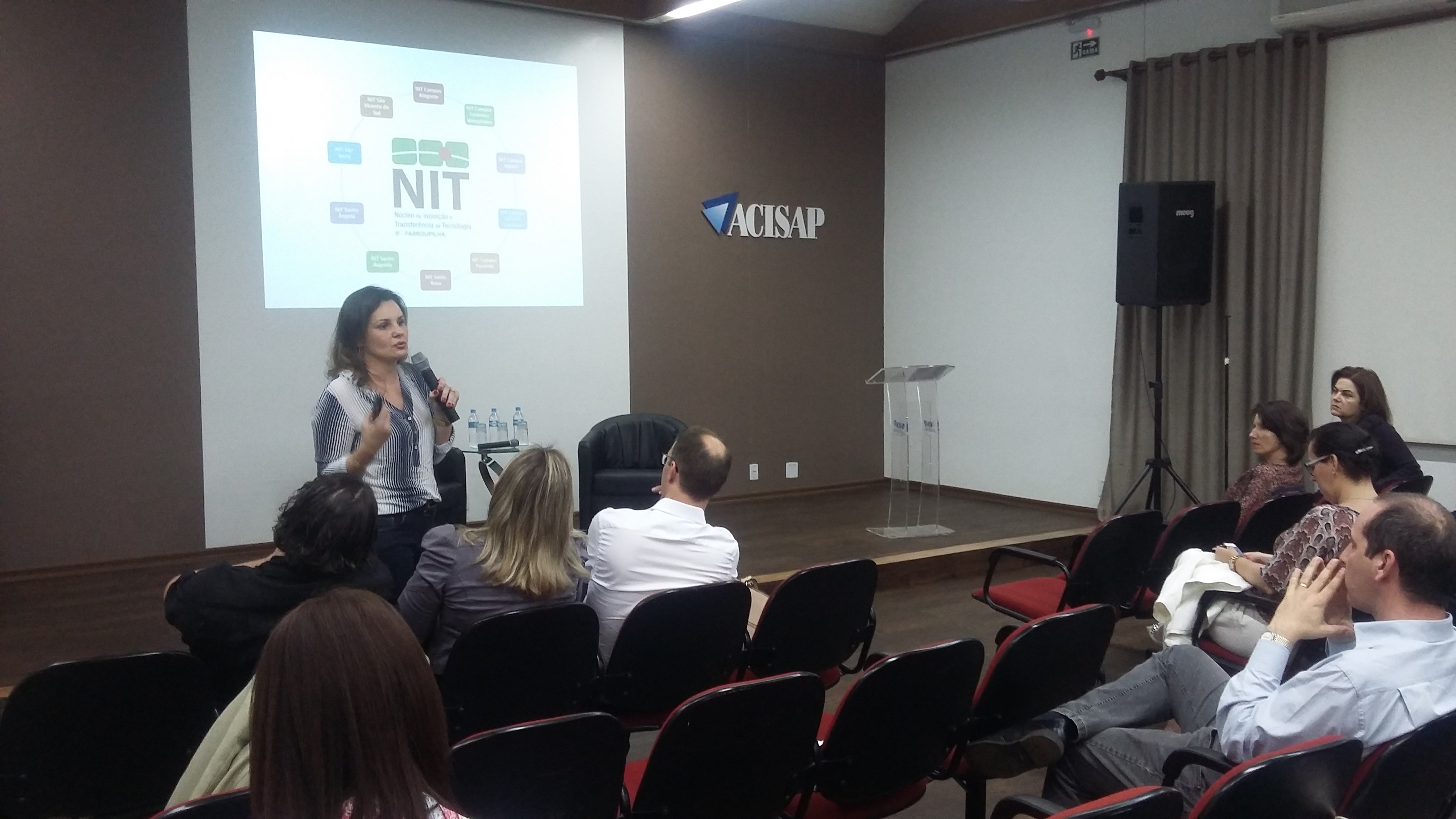 Na noite desta terça-feira (27), o Núcleo de Inovação Tecnológica (NIT) do Campus Santa Rosa, representado pelos professores Rodrigo Magnos Soder e Adriana Michelotti, teve participação em mesa redonda sobre o tema “O desafio dos jovens empreendedores e o papel da universidade” na Associação Comercial, Industrial, Serviços e Agropecuária de Santa Rosa (Acisap).