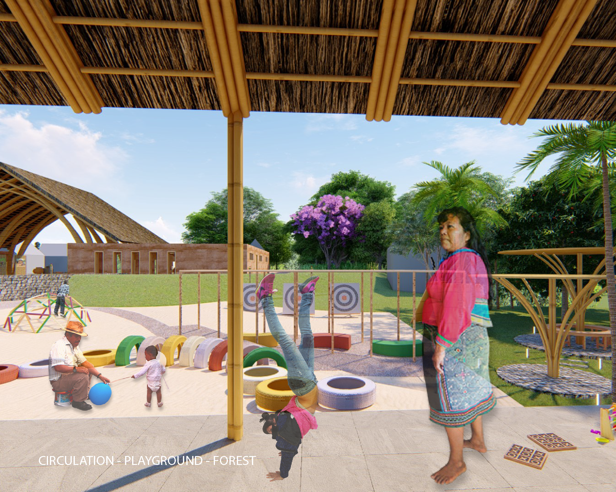 O trabalho exigiu um estudo aprofundado sobre a etnia, para uma proposta alinhada aos seus costumes e práticas. O respeito à cultura indígena aparece da escolha dos materiais às técnicas de construção. "Todos os edifícios propostos possuem materialidades presentes no local e que já fazem parte da cultura construtiva da comunidade, como o barro, a palha e a taquara. Isso não só reduz os custos, como também gera um senso de pertencimento em todos os envolvidos". Outro fator decisivo foi priorizar um método no qual a comunidade pudesse participar da construção de todos os blocos propostos. "Por isso a técnica construtiva adotada foi a taipa de pilão".