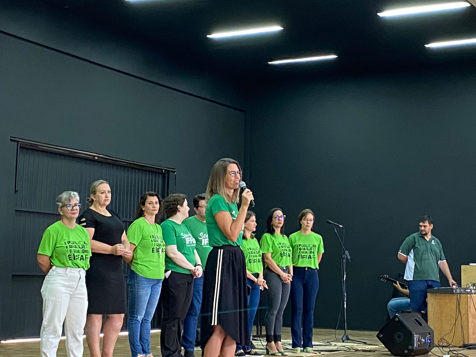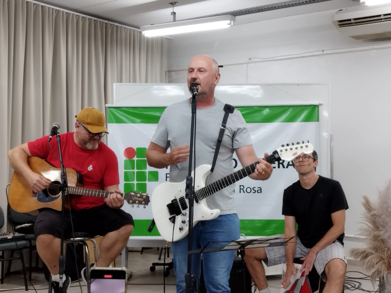 À noite, os estudantes veteranos dos cursos superiores, os ingressantes e veteranos dos cursos Técnicos em Eletromecânica e Técnico em Alimentos EJA/EPT. A acolhida aconteceu no Auditório, com apresentação musical dos servidores Gian Calliari, Antônio Miragem e Márcio Coutinho.