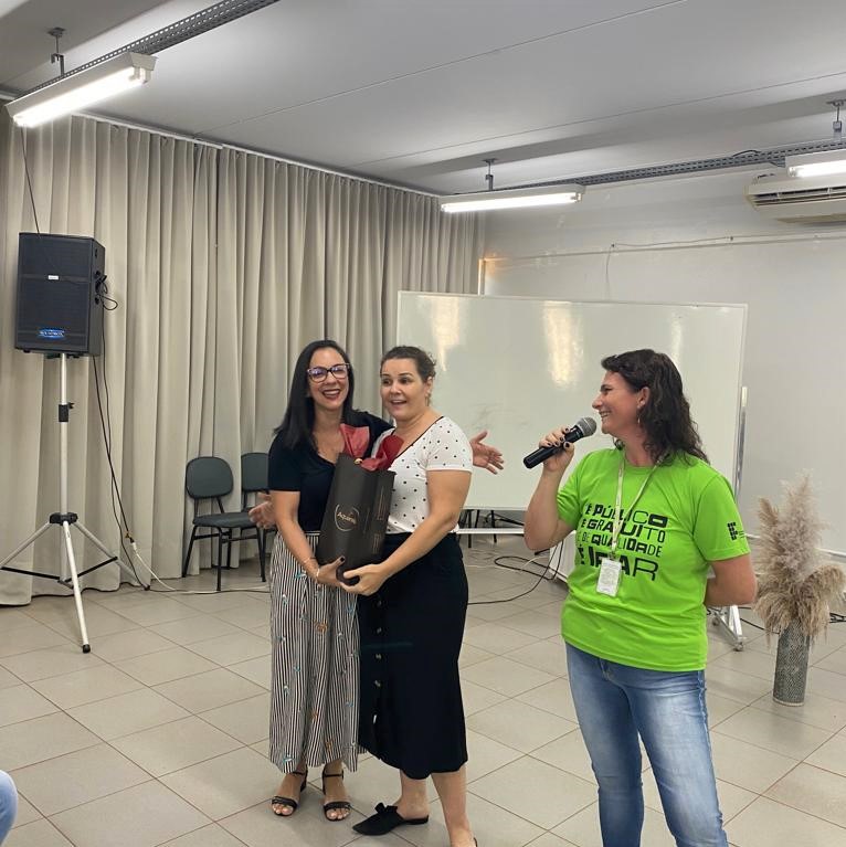 A professora Raquel Canova, em nome da equipe diretiva, entregou um presente à professora Adriana Michelotti para, de modo simbólico, agradecer pela dedicação durante o tempo que ela esteve à frente da DPEP. A diretora-geral, Analice Marchezan, em sua fala, enalteceu o trabalho realizado pela professora Adriana Michelotti e desejou que a trajetória do professor Adriano Wagner, no novo cargo, seja exitosa. “O início de novos ciclos são importantes porque dão oportunidades para novas experiências, novas ideias na gestão, e isso dinamiza os processos e fortalece ainda mais a forma como a instituição se posiciona na comunidade”, finalizou a diretora-geral.