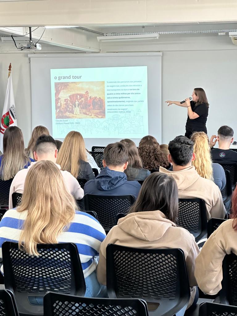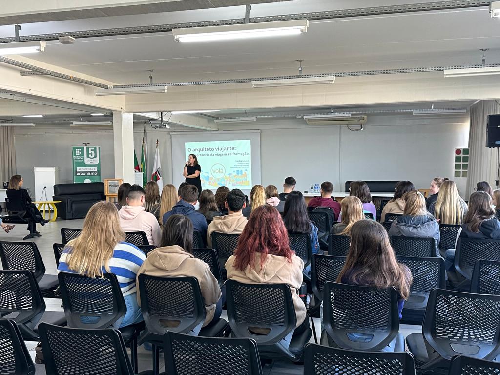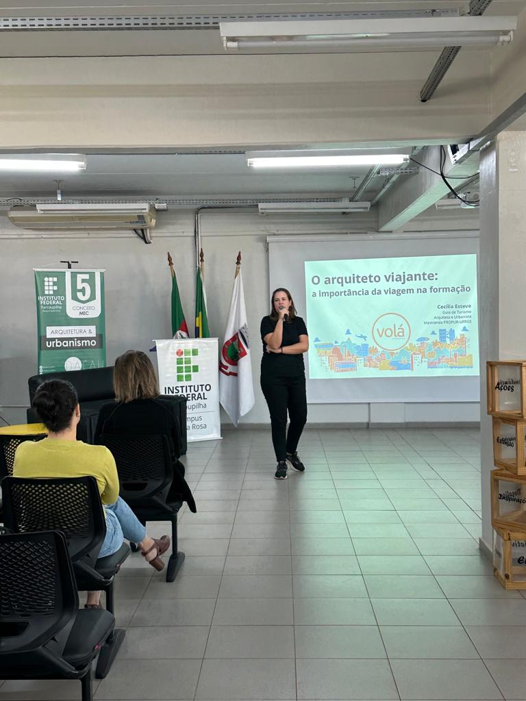 A aula inaugural do Curso de Arquitetura e Urbanismo do IFFar – Campus Santa Rosa foi realizada na quinta-feira (20/04), com o tema "O Papel Transformador da Viagem para o Arquiteto e Urbanista", e ministrada por Cecília Esteve.
