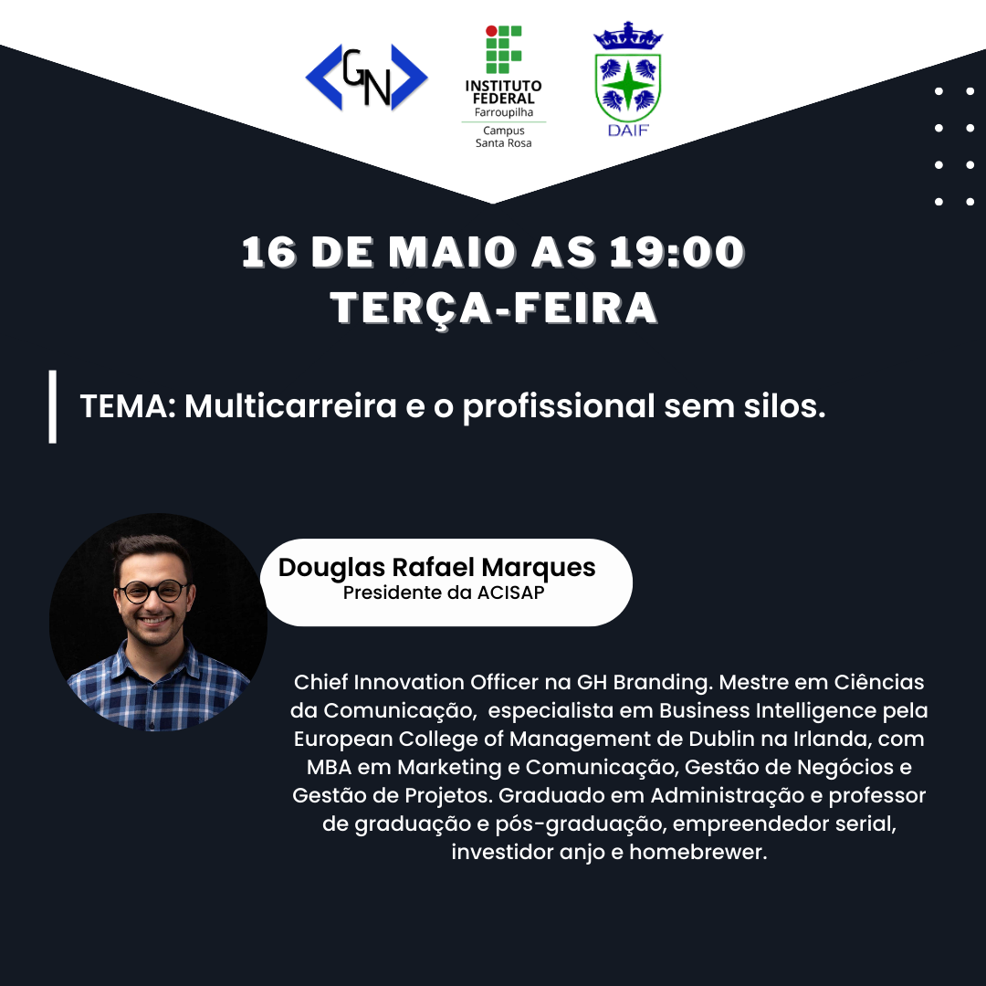 Terça,16/05: Douglas Rafael Marques - Multicarreira e o profissional sem silos.